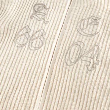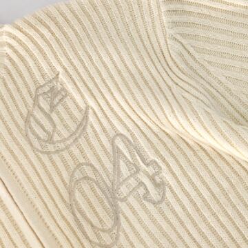 同系色のロゴがさり気ないリブニットカーディガンです。
