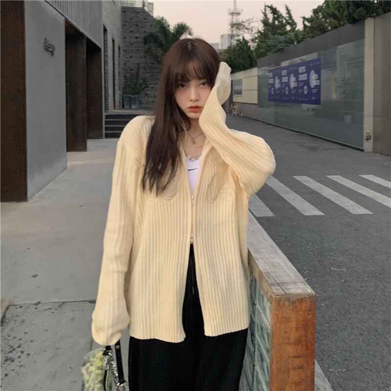 リブニット トップス カーディガン 長袖 ファスナー リブ 前開き かわいい 大人可愛い シンプル カジュアル おしゃれ お洒落 大人可愛い 大人女子 こなれ感 ラフ キュート ガーリー 主役級 存在感 春 秋 冬 10代 20代 30代 40代 レディース 女性用 女の子 デート お出かけ 公園デビュー 女子会 お泊まり 休日 韓国 韓国系 ファッション コーデ スタイル モテ 新作 定番 送料無料 トレンド 流行 大きい 大きめ ビッグサイズ ゆったり ゆる インポート 海外 人気 大人カジュアル