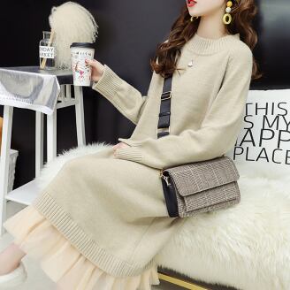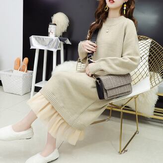 ニットワンピース ワンピース 長袖 ラウンドネック フリル 切り替えデザイン ドッキング かわいい 大人可愛い きれいめ おしゃれ お洒落 大人可愛い 大人女子 ラブリー キュート ガーリー エレガント 主役級 存在感 無地 秋 冬 10代 20代 30代 レディース 女性用 女の子 学生 デート お出かけ 女子会 お泊まり 休日 着回し 韓国 韓国系 ファッション コーデ スタイル モテ 体系カバー 新作 定番 送料無料 トレンド 流行 インスタ映え インポート 海外 人気 女子力 大人カジュアル