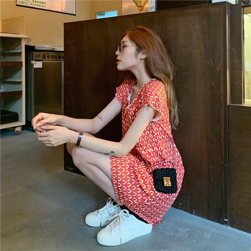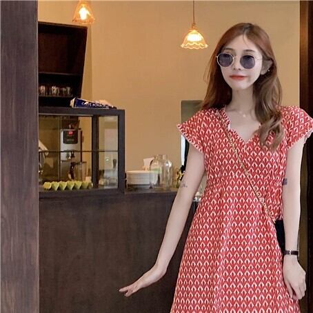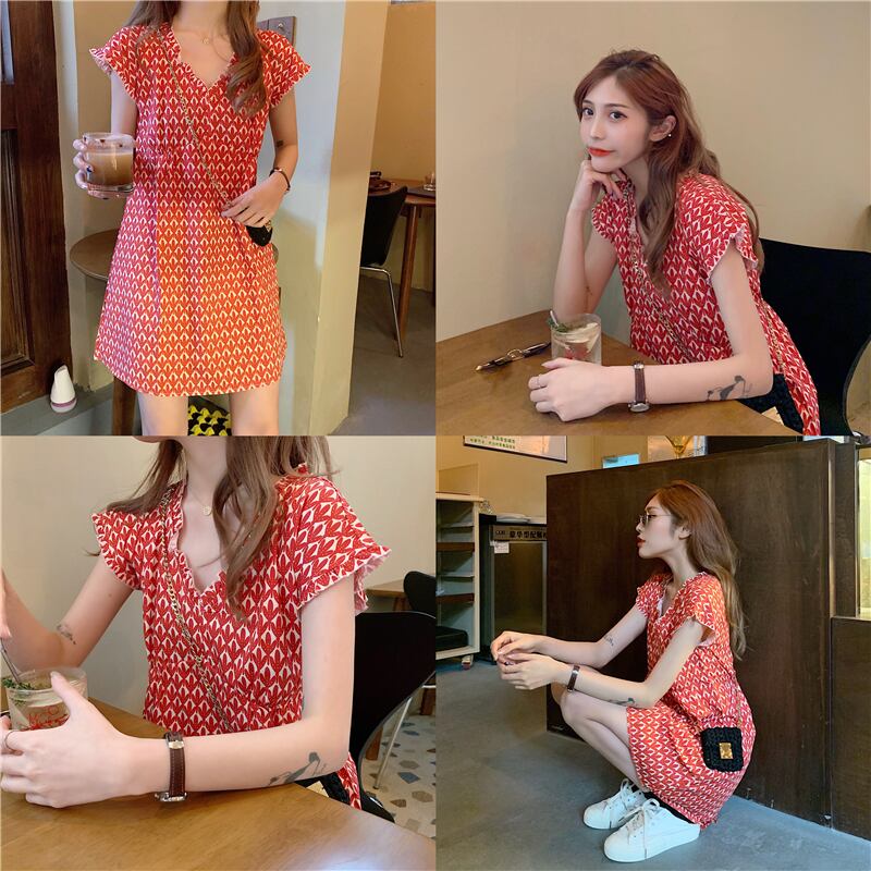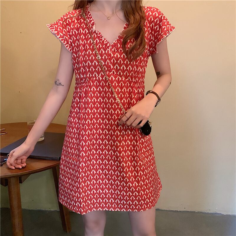 商品名:柄ワンピース レッド