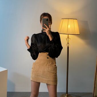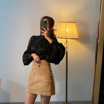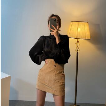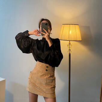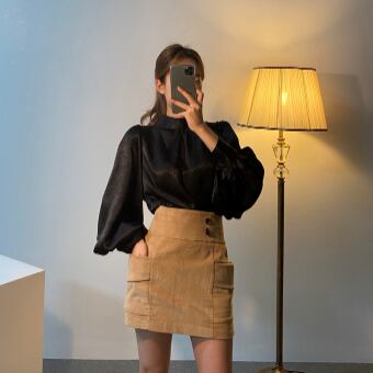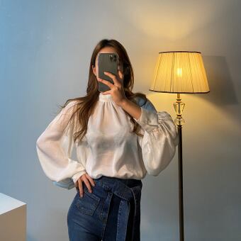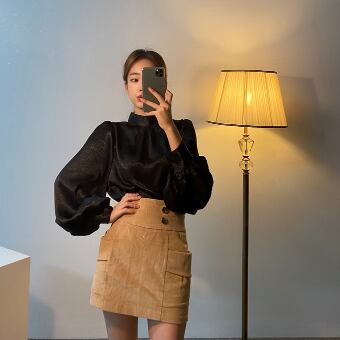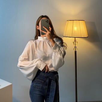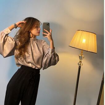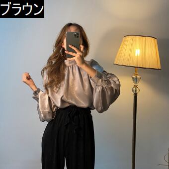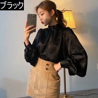 ランタンスリーブサテンシャツ トップス シャツ ブラウス ブラック 黒 ホワイト 白 ブラウン 茶色 レギュラー丈 袖あり 長袖 ランタンスリーブ スタンドカラー 大人女子 大人 上品 おしゃれ エレガント デイリーウェア レトロ レトロ風 こなれ感 ルーズ シルエット ラフ 個性的 デザイン 主役級 存在感 無地 秋 オータム 20代 10代 30代 レディース 女性用 オフィス ビジネス OL 通勤 デート お出かけ 女子会 食事会 ワンサイズ 光沢