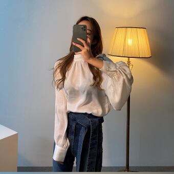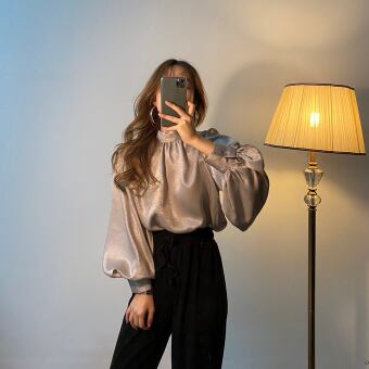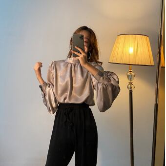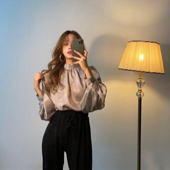 大人女子のエレガントな雰囲気を引き立ててくれるランタンスリーブサテンシャツ。シルエットはルーズでラフなのに、存在感抜群の個性派デザイン。シンプルな無地でありながら袖のボリュームがアクセントとなり、ランタンスリーブは品良く華やかな印象を与えます。