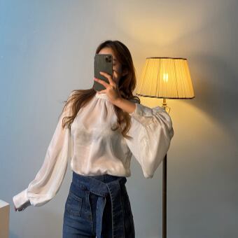 ボリューム袖がよりレディーな印象のサテンシャツです♪