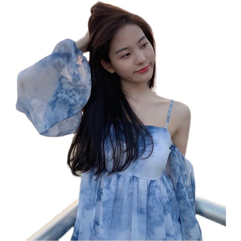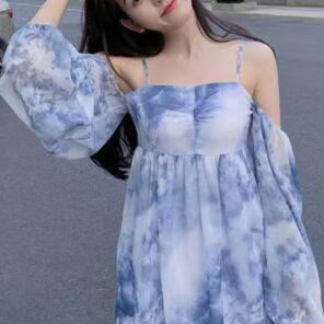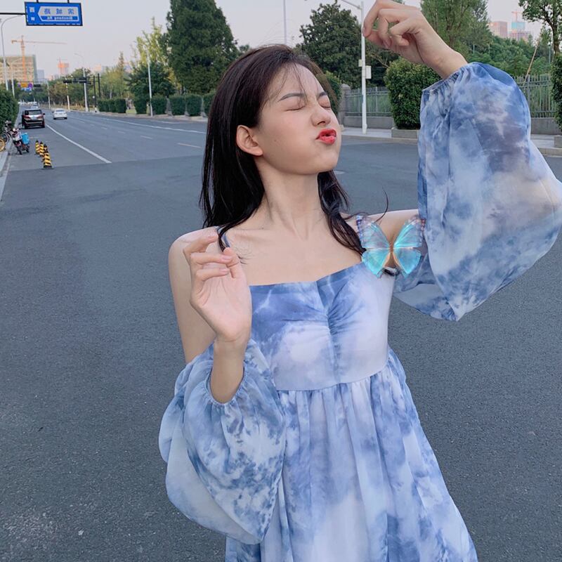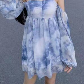 オフショルダーワンピース スイート ガーリー ショート丈 袖あり 長袖 ストラップ フレア 透け感 シアー 大人女子 大人 上品 おしゃれ デイリーウェア レトロ レトロ風 こなれ感 ルーズ シルエット ラフ キュート かわいい 女子 個性的 デザイン 主役級 存在感 柄 夏 サマー 20代 10代 レディース 女性用 デート お出かけ 女子会 食事会 イベント リゾート 旅行 トレンド ファッション コーデ 細見え スタイル S M L