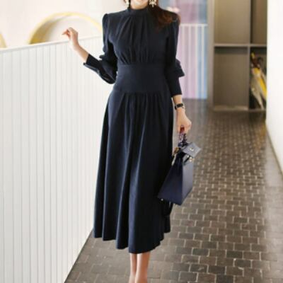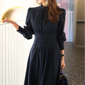 お上品ロングワンピース ワンピース ロング丈 袖あり 長袖 ボリューム袖 ラウンドネック フレア Aライン ウエストマーク 綿 爽やか かわいい 大人可愛い きれいめ シンプル 大人 上品 おしゃれ 大人可愛い 大人女子 無地 春 秋 誕生日 入学式 入園式 卒業式 卒園式 謝恩会 二次会 10代 20代 30代 40代 50代 レディース ママ 女の子 オフィス ビジネス OL 通勤 学生 通学 お出かけ 女子会 パーティー イベント 着回し ファッション 楽ちん モテ S M L XL 大きいサイズ