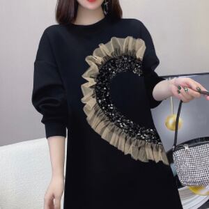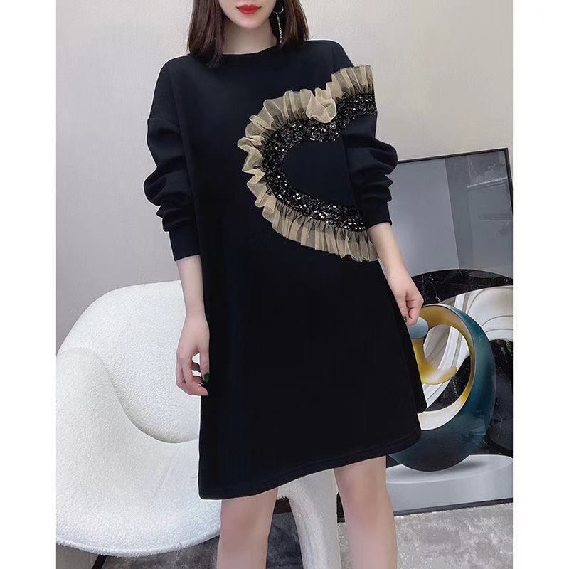 レースステッチセータドレス ワンピース ミディアム丈 袖あり 長袖 ラウンドネック ストレート レース フリル ラメ 綿 かわいい 大人可愛い きれいめ カジュアル 大人 おしゃれ 大人可愛い 大人女子 こなれ感 ラブリー キュート ルーズ 個性的 クール モード系 モダン 主役級 存在感 抜け感 無地 秋 冬 クリスマス バレンタイン レディース 女性用 OL 通勤 学生 通学 デート お出かけ 女子会 休日 パーティー イベント ホテル レストラン 着回し ファッション コーデ スタイル モテ 美脚