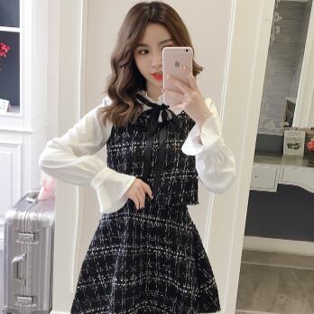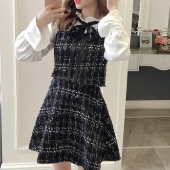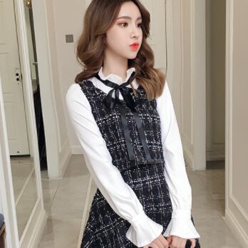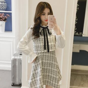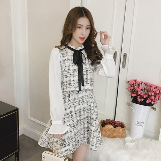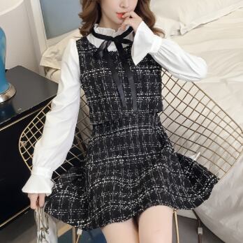 レイヤード風ワンピース ワンピース 長袖 切り替えデザイン ドッキング ツーピース お得 かわいい 大人可愛い きれいめ 大人 上品 おしゃれ お洒落 レトロ 大人可愛い 大人女子 ラブリー キュート ガーリー エレガント 主役級 存在感 千鳥格子 春 秋 10代 20代 30代 レディース 女性用 女の子 デート お出かけ 女子会 お泊まり 休日 パーティー イベント 韓国 韓国系 ファッション コーデ スタイル 新作 定番 送料無料 トレンド 流行 インスタ映え リボン ミニ丈 フレアスカート フリル