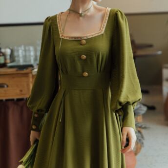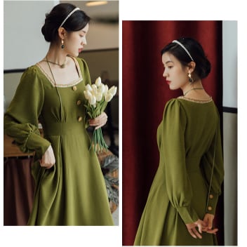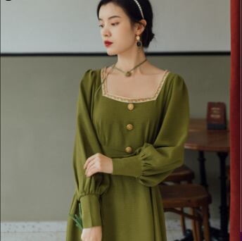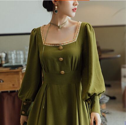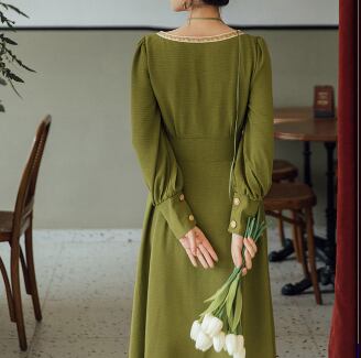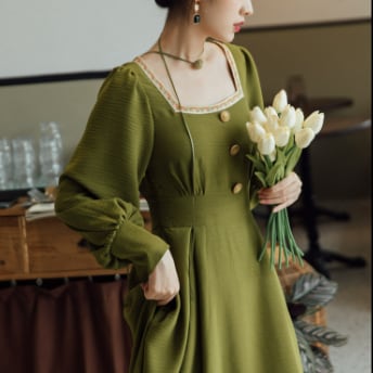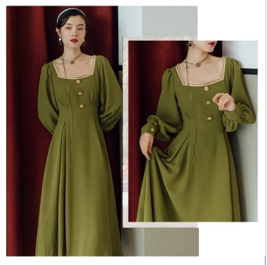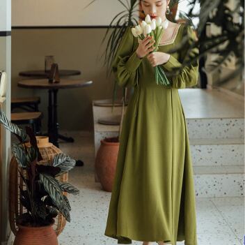 クラシックロングワンピース ワンピース ロング丈 長袖 スクエアネック フレア Aライン ウエストマーク 薄手 大人スタイル かわいい 大人可愛い きれいめ シンプル 大人 上品 おしゃれ かっこいい レトロ 大人女子 ラブリー キュート ガーリー 存在感 無地 春 秋 誕生日 二次会 披露宴 10代 20代 30代 40代 レディース ママ 女の子 OL 通勤 学生 通学 デート お出かけ 女子会 休日 パーティー イベント レストラン ファッション スタイル モテ M L XL 2XL 3XL 緑