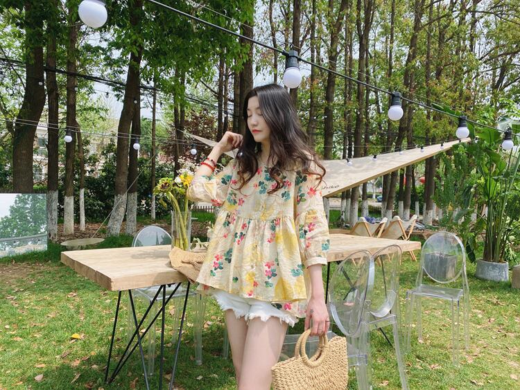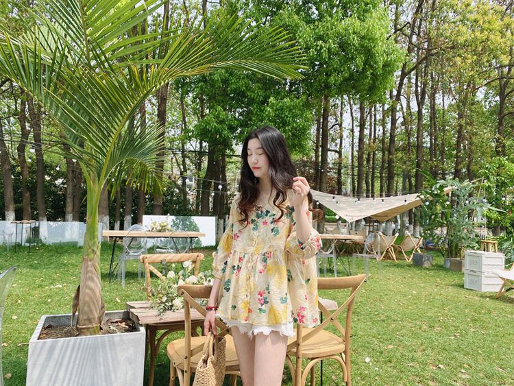 花柄シフォンシャツ ブラウス シャツ トップス フラワープリント フローラルプリント 七分袖 パフスリーブ袖 ティーシャツ 新作 女性 夏 新しい サマーファッション トレンディ トレンド 流行 森ガール お呼ばれ 人気デザイン バブル半袖 フレンチシャツ シャツトップ スタイリッシュ モテ お人形 ドール 乙女 スタイルアップ 着痩せ レディース おしゃれ デート 大人可愛い お出かけ 存在感 こなれ感 抜け感 女子会 普段使い デイリー使い 海外トレンド 大人気 高見え 流プチプラ メリハリ