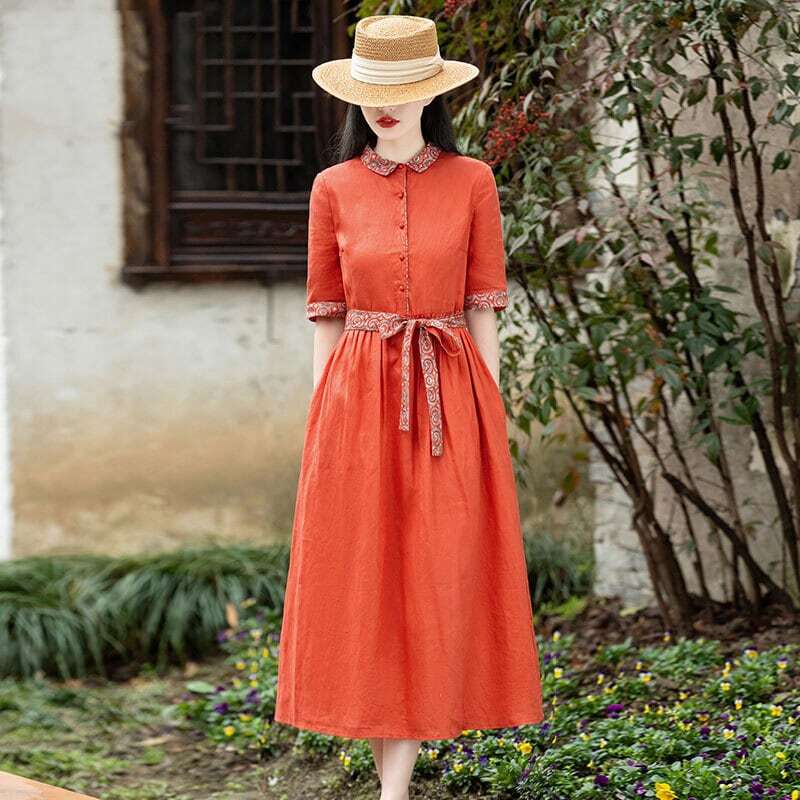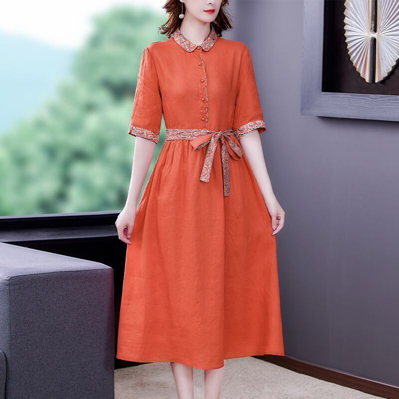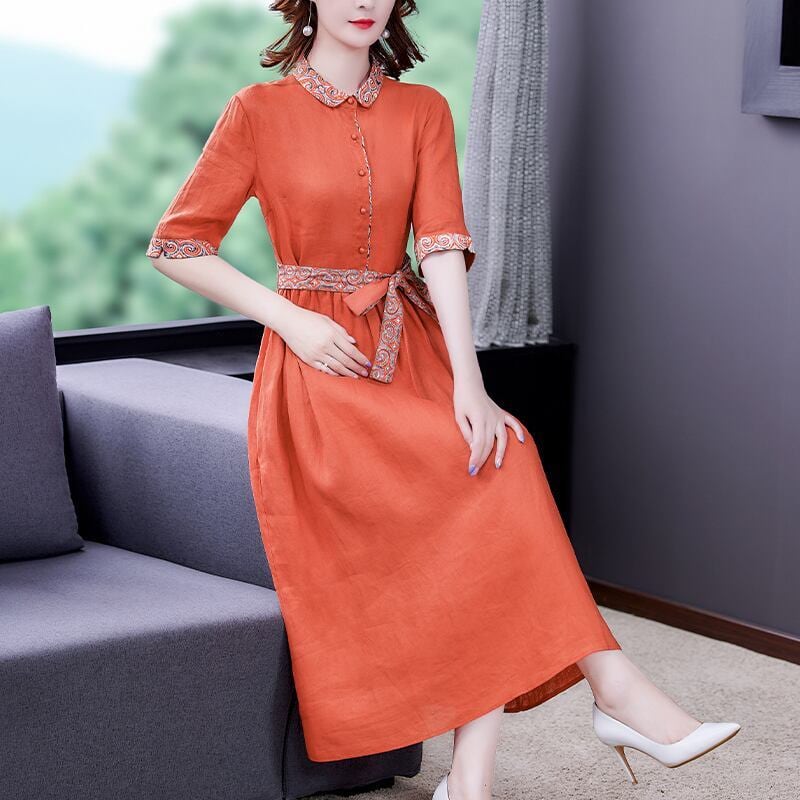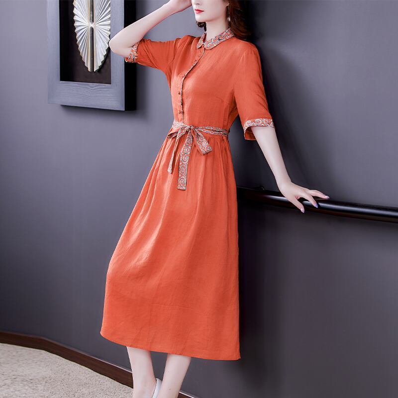 エスニックスタイル ワンピース ワンピドレス ロング丈 ウエストリボン 切り替えしデザイン オレンジ アジアンチェック カジュアルスタイル インポートファッション おススメ クール サマー 夏 旅行 ビーチ デート 半袖 韓国ファッション オルチャン 韓国デザイン 海外ファッション インスタ 今風 レトロデザイン 半袖ワンピース レディース オルチャン パーティー お呼ばれ 二次会 披露宴 飲み会 イベント 発表会 ウエディング 可愛い お洒落 かわいい 大人女子 個性的 清楚 10代 20代 お出かけ