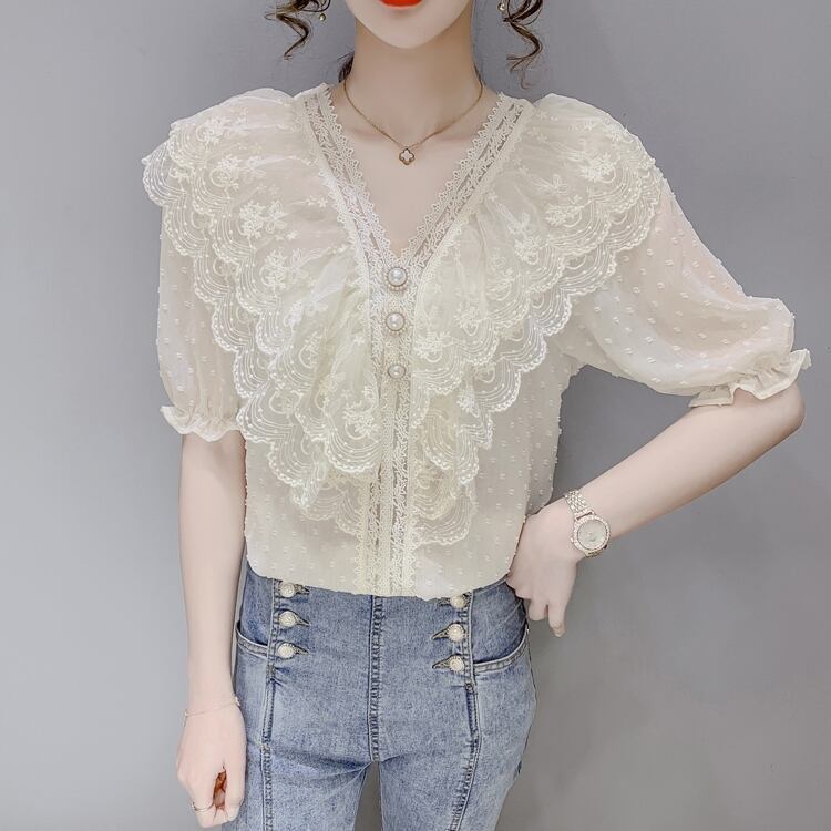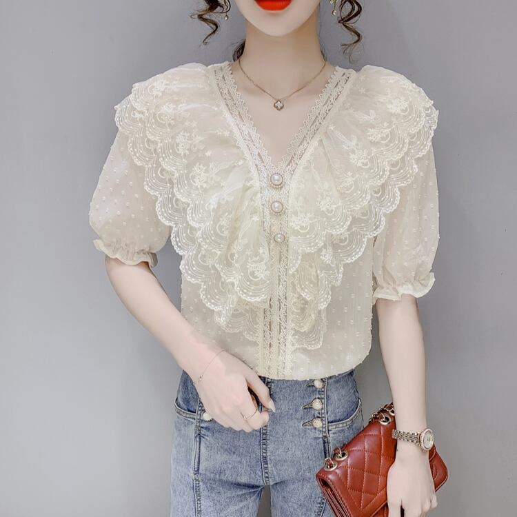 ブラウス シースルー 水玉模様 ドット 刺繍 半袖 パフスリーブ袖 フリル使い 大き目襟 新作 サマーファッション トレンディ トレンド 流行 Vネック 無地 お呼ばれ 人気デザイン バブル半袖 フレンチシャツ シャツトップ スタイリッシュ モテ お人形 ドール 乙女 スタイルアップ 着痩せ レディース おしゃれ デート 大人可愛い お出かけ 存在感 こなれ感 抜け感 女子会 普段使い デイリー使い 海外トレンド 大人気 高見え プチプラ 二次会 披露宴 発表会 飲み会 韓国デザイン オルチャン