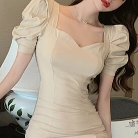 このワンピースは、パフスリーブとサイドスリットが特徴的なロング丈のフィットスリムドレスです。レトロでエレガントなヘップバーンスタイルが、上品かつ大人可愛い印象を与えます。ブラックとアプリコットの2色展開で、自分のスタイルに合わせてチョイスしてみてください。