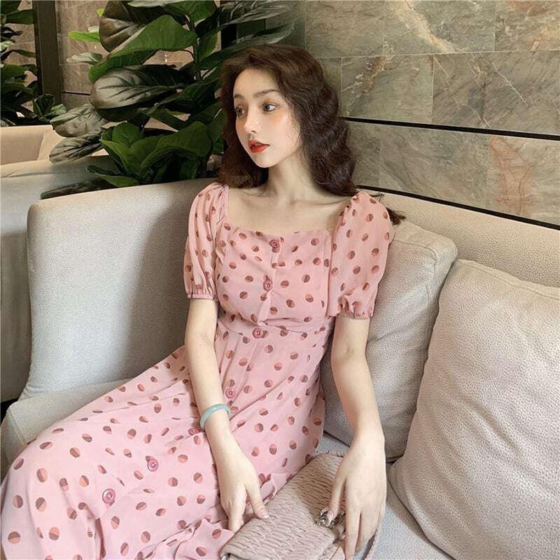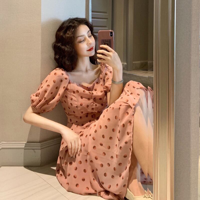 水玉ワンピース 水玉模様 ドット柄 グラデーション パフスリーブ 半袖 ピンク ミモレ丈 オシャレワンピース 大人ワンピース シンプル きれいめ こなれ感 カジュアルスタイル インポートファッション 海外デザイン プチプラ かわいい オシャレ クール 大人女子 お出かけ お呼ばれ パーティー 二次会 飲み会 合コン 女子会 見え高 旅行 ビーチ 夏 サマーファッション トレンディ トレンド 流行 スタイリッシュ 人気デザイン 外国風 おしゃれさん おすすめ デート 遊園地 アミューズメントパーク シック