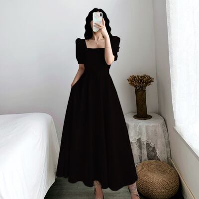 主役級に輝けるシンプルなロングドレス。スクエアカラーに半袖パフスリーブがエレガントな印象を与えます。ウエストのラインがスリムに見えるように設計されたこのドレスは、女性らしいシルエットが目を惹きます。ホワイト、ブラック、レッドの3色展開で、様々なシーンに合わせることができます。コーディネートしやすいドレスは、パーティーやイベントから、冠婚葬祭まで幅広く対応可能。海外のスタイルからインスピレーションを得た外国風デザインは、大人の女性にも好印象を与えます。夏にもぴったりな涼しげな生地は着心地も抜群です。シンプルデザインでありながら、上品で美しい装いを演出できる一着です。