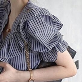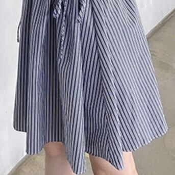 シャツワンピースは、レディースファッションのアイコン的存在です。今回ご紹介するのは、ブルーと白のストライプ柄が爽やかな一枚。パフスリーブから始まるフリルとリボンのデザインで女性らしさも満点です。ハイウエストで切り替えたAラインのシルエットには、裾がフレアに広がるデザイン。脚長に見せるためにも、ミモレ丈が嬉しいポイントです。