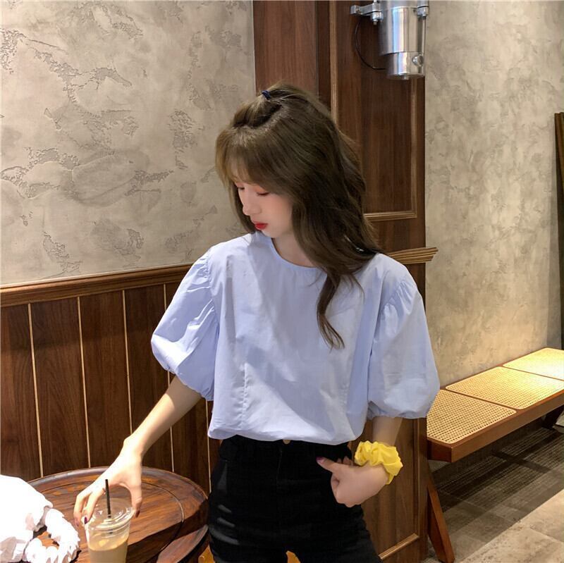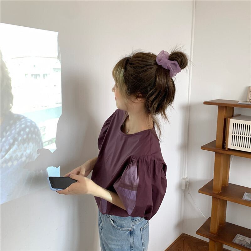 半袖シャツ 魅せる トップス シャツ ブラウス ホワイト 白 ブルー 青 パープル 紫 レギュラー丈 袖あり 半袖 パフスリーブ ラウンドネック ストレート 大人女子 大人 上品 おしゃれ きれいめ シンプル エレガント レトロ レトロ風 こなれ感 ラフ ルーズ シルエット キュート ガーリー かわいい 女子 個性的 デザイン 主役級 存在感 無地 春 スプリング 10代 20代 30代 レディース 女性用 学生 通学 デート お出かけ 女子会 着回し 普段使い M L XL