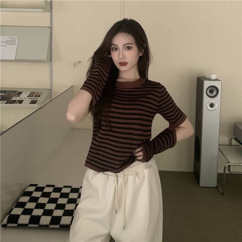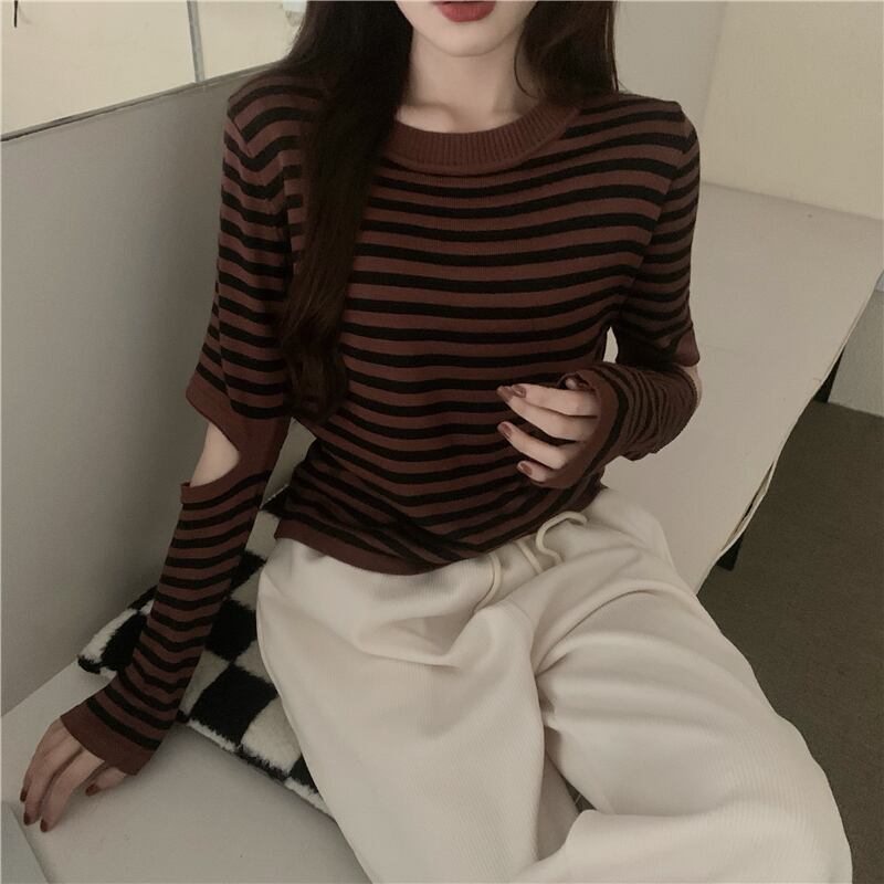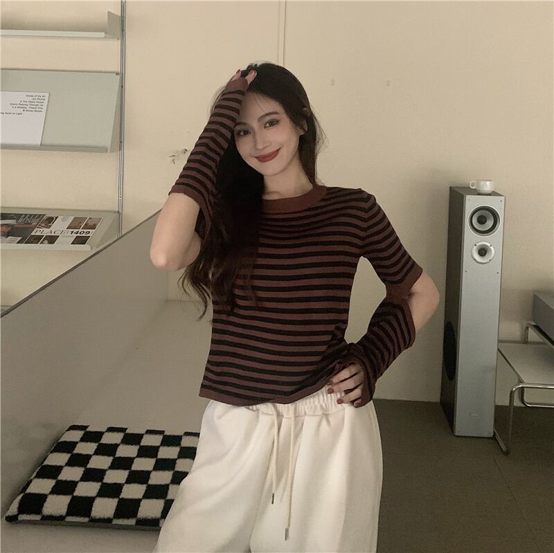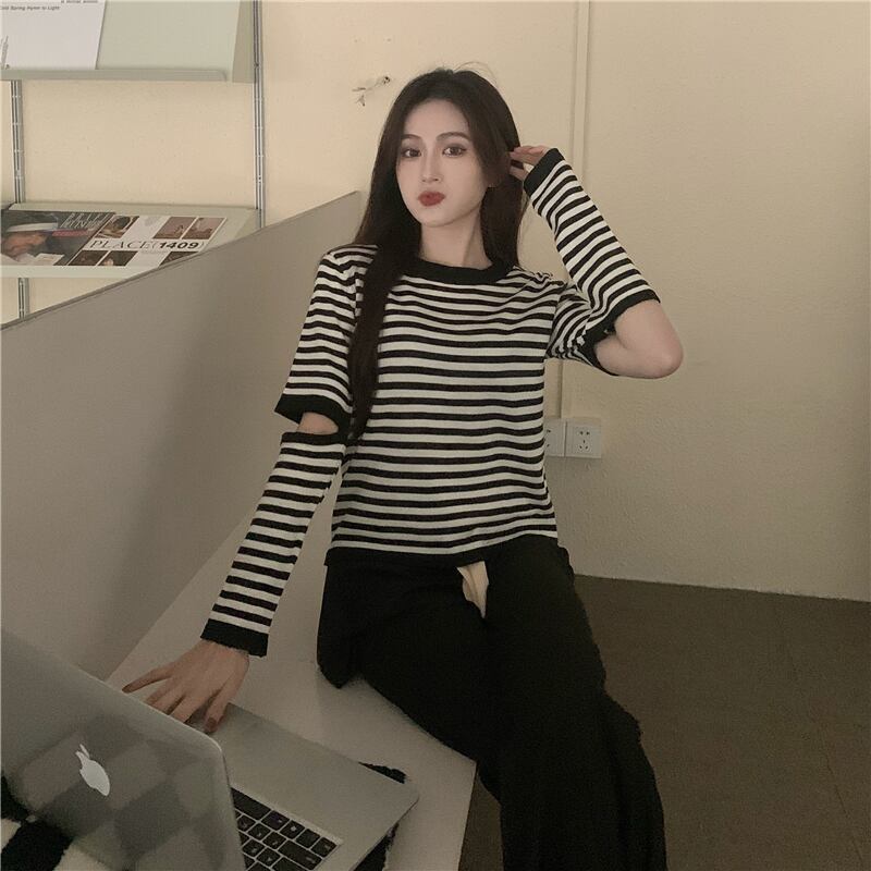 トップス レディース シャツ Tシャツ 袖あり 半袖 襟なし Uネック ラウンドネック ストライプ ボーダー アームカバー オープンアーム 白 ホワイト 黒 ブラック 茶色 ブラウン かわいい 大人可愛い 大人 大人女子 きれいめ おしゃれ お洒落 シンプル ラブリー キュート 10代 20代 30代 学生 通学 デート お出かけ 女子会 休日 普段使い カジュアル こなれ感 抜け感 ラフ ルーズ ゆったり ゆる インパクト メンズライク マニッシュ ボーイッシュ ユニセックス スポーティー アクティブ