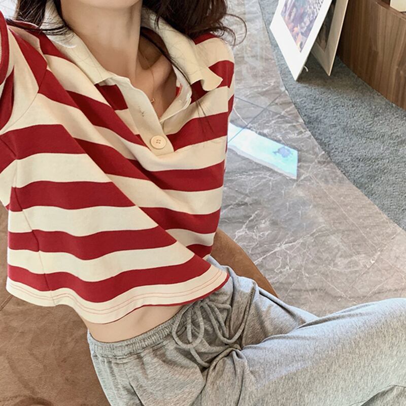 トップス レディース Tシャツ 短め バックレス 袖あり 半袖 襟付き 可愛い 大人可愛い シンプル カジュアル レトロ おしゃれ お洒落 かわいい 大人女子 こなれ感 ラフ メンズライク ボーイッシュ スポーティー ラブリー キュート ルーズ 存在感 抜け感 主役級 S M L XL 黒 ブラック 赤 レッド 黄色 イエロー ボーダー 春 夏 10代 20代 30代 学生 通学 デート お出かけ 公園デビュー 女子会 アウトドア 旅行 海 着回し楽ちん モテ 脚長 海外 インポート