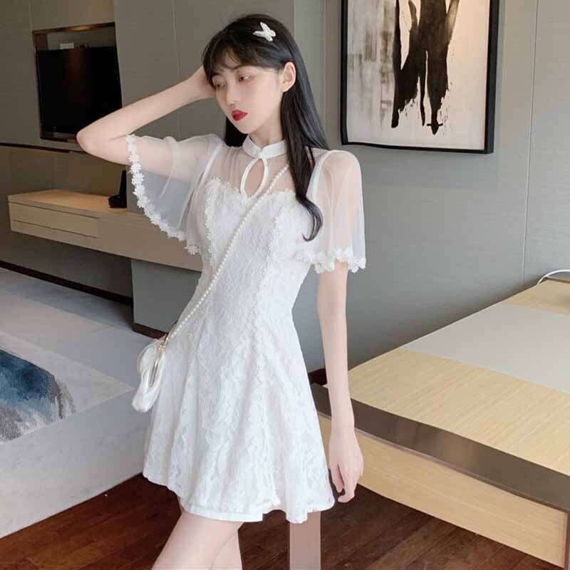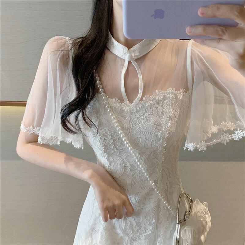 ワンピース レディース フレアワンピース ワンピドレス ミニ ミニ丈 ショート丈 膝上 袖あり 半袖 フレアスリーブ レース袖 襟付き スタンドカラー Aライン レース 刺繍 透け感 シースルー 可愛い 大人可愛い きれいめ おしゃれ お洒落 かわいい アジアン ラブリー キュート ガーリー セクシー エレガント 主役級 存在感 S M L 白 ホワイト 花柄 フラワー 春 夏 二次会 謝恩会 キャバドレス クラブ 10代 20代 デート お出かけ パーティー イベント リゾート モテ インスタ映え