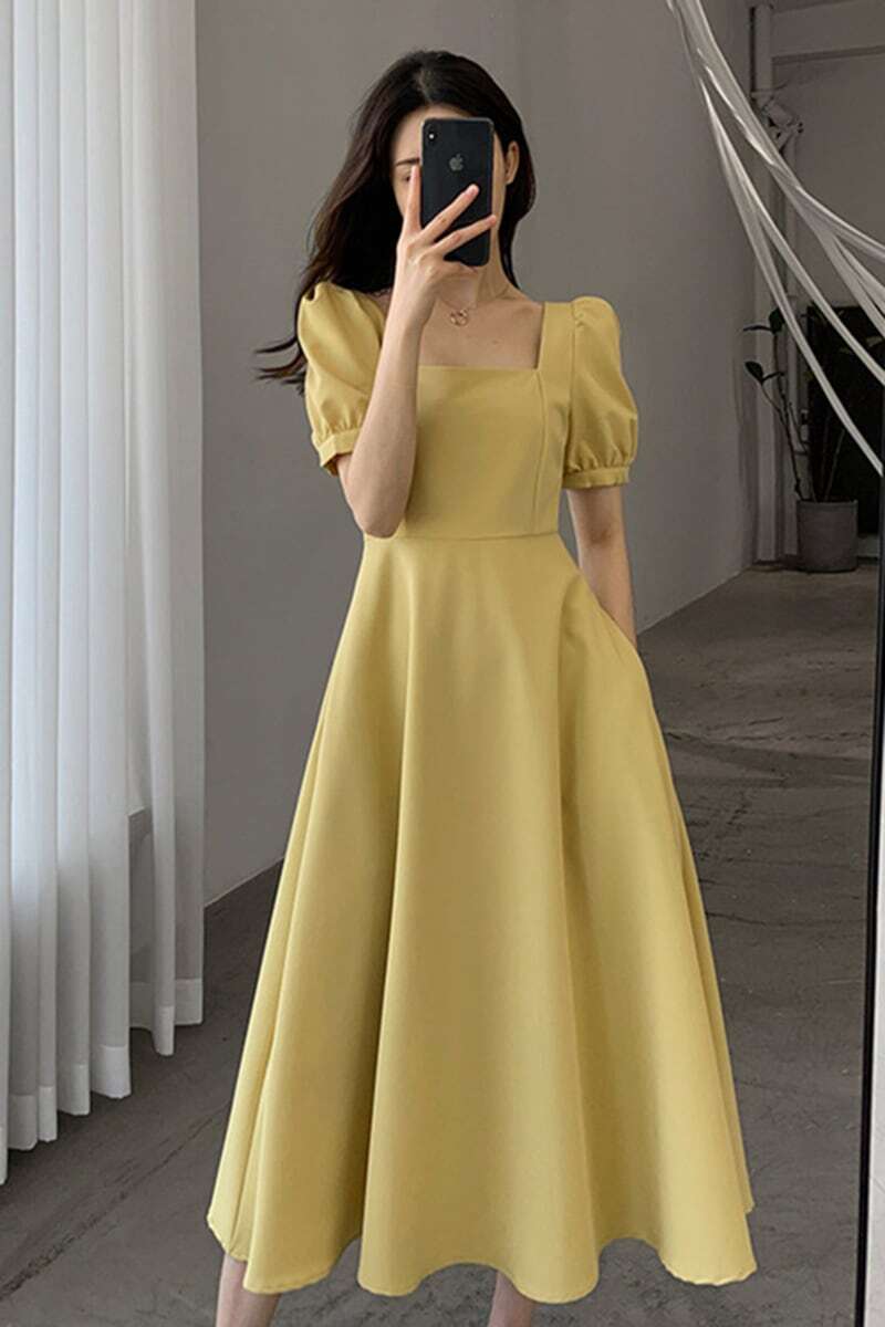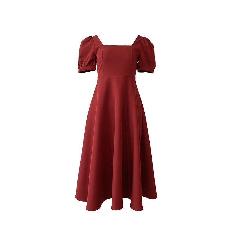 ワンピース レディース フレアワンピース ワンピドレス 膝下 ミモレ ミモレ丈 ロング ロング丈 袖あり 半袖 パフスリーブ スクエアネック フレア Aライン 可愛い 大人可愛い きれいめ シンプル 大人 上品 おしゃれ お洒落 レトロ フェミニン 大人女子 エレガント 主役級 存在感 M L XL 2XL 3XL 4XL 大きいサイズ 黒 ブラック 赤 レッド イエロー 無地 春 夏 秋 結婚式 二次会 披露宴 謝恩会 10代 20代 30代 40代 デート お出かけ 女子会 パーティー イベント