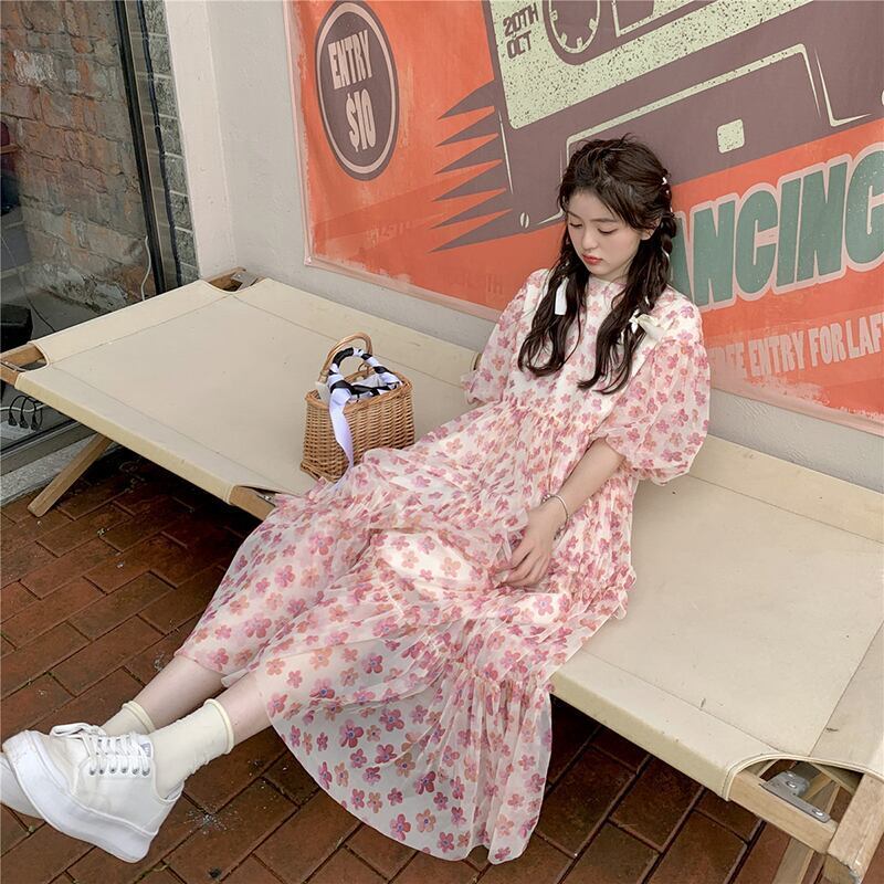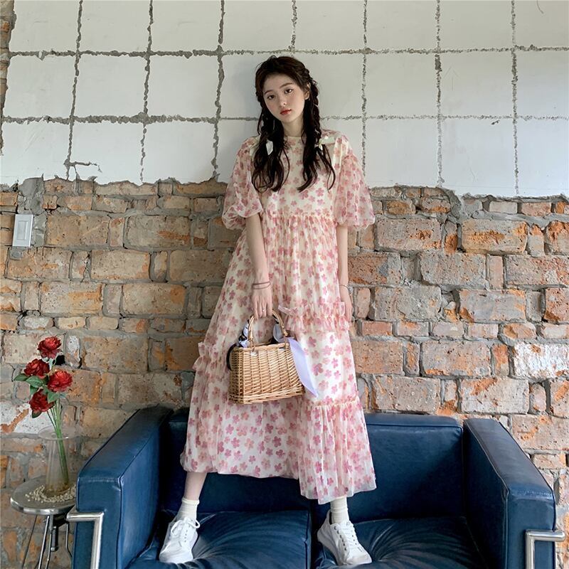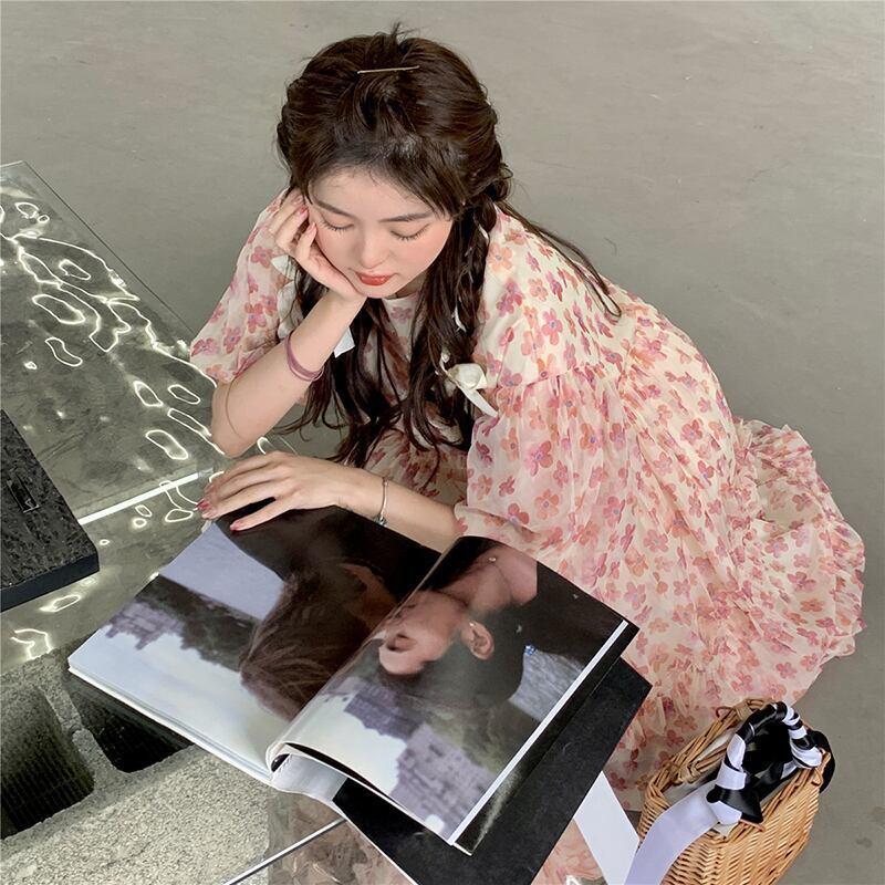 ワンピース ロングスカート ロング丈 プリンセス お姫様 かわいい 袖あり 半袖 パフスリーブ ランタンスリーブ Uネック ラウンドネック 襟なし ギャザー 透け感 シースルー アプリコット インポートデザイン 大人可愛い 大人女子 きれいめ おしゃれ お洒落 シンプル ラブリー キュート ガーリー フェミニン 10代 20代 学生 通学 デート お出かけ 女子会 休日 普段使い カジュアル こなれ感 抜け感 ゆったり ゆる フローラル 花柄 小花柄 フラワー ボタニカル 上品 優雅 華やか パーティー