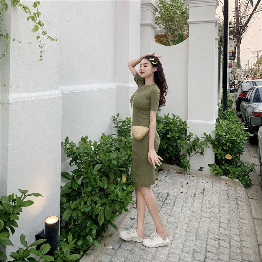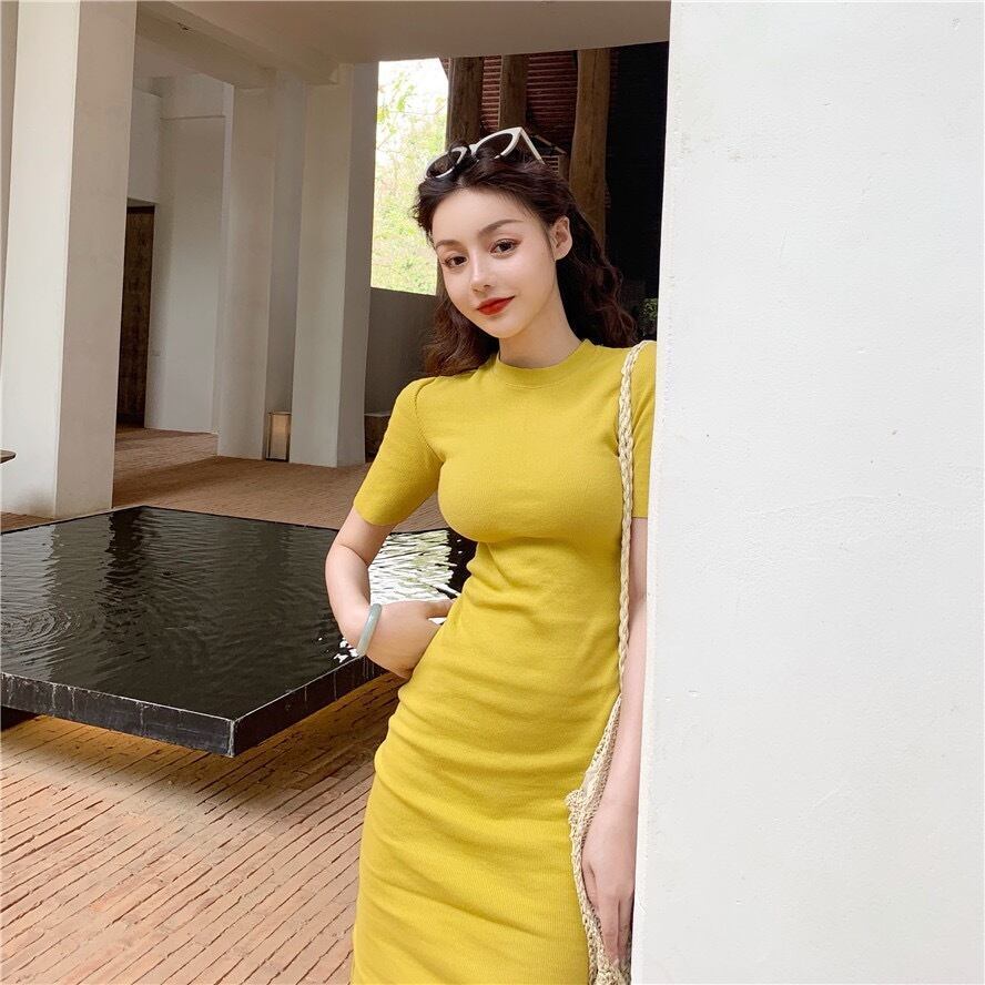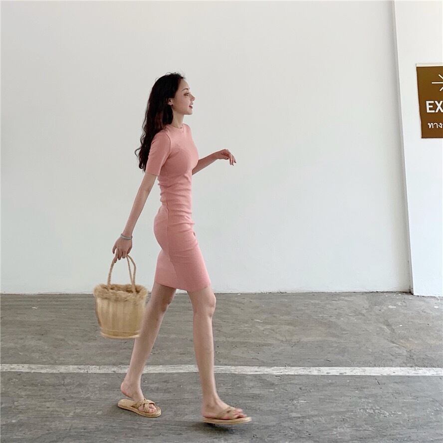ワンピース レディース ミドル丈 膝上 ショートスカート ラウンドネック ひざ丈 膝丈 袖あり 半袖 スリム 細身 ハイウエスト 春 シンプル カラバリ レッド 赤 ピンク パープル 紫 ブラック 黒 グリーン 緑 イエロー 黄色 かわいい 大人可愛い きれいめ 上品 おしゃれ レトロ フェミニン ラブリー キュート ガーリー ワンサイズ オルチャン 韓国ファッション 無地 春 10代 20代 30代 OL 学生 デート お出かけ 女子会 パーティー イベント 旅行 モテ 個性的 主役級