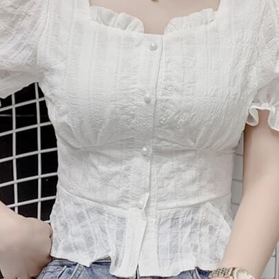 フレンチスクエアカラー ホワイト ブラック 黒 白 半袖 シフォンシャツ 新作 パフスリーブ フリル袖 フリル トレンド おとなしめ 人気 トレンディ インポート プチプラ ランキング 大人きれい ホットアイテム 海外デザイン インポートファッション カジュアルスタイル ラクチンコーデ きれいめ 上品 おしゃれ 人気 大人可愛い 大人女子 大人カラー オフィス OL 通勤 学生 通学 デート おでかけ ファッション 着回し コーデ スタイル モテ 定番 インポートファッション 人気 おすすめ インスタ映え