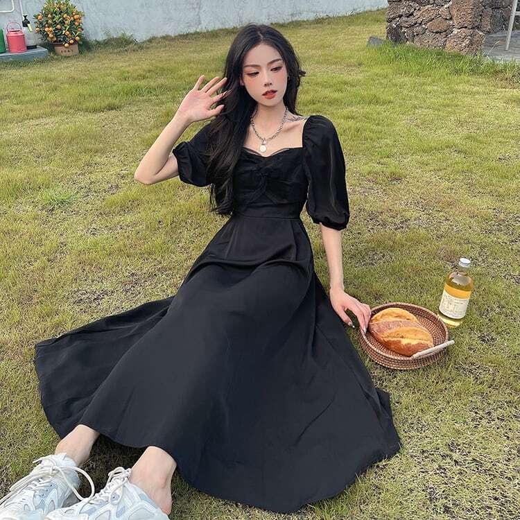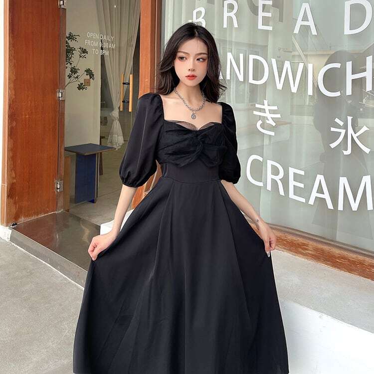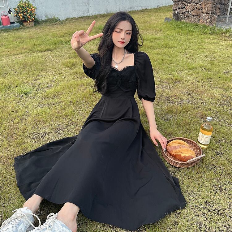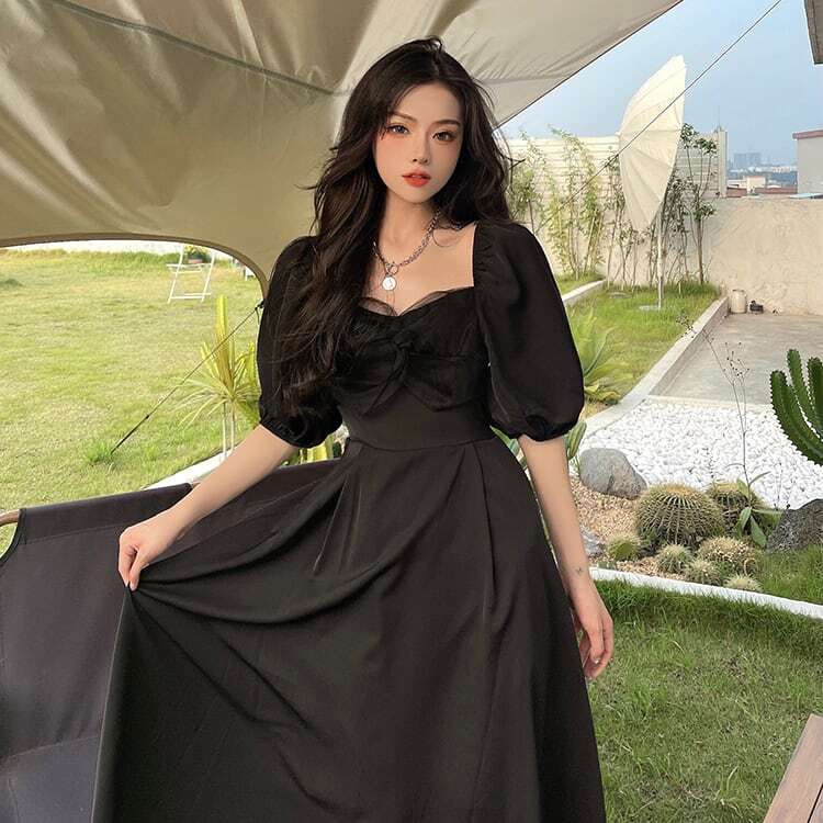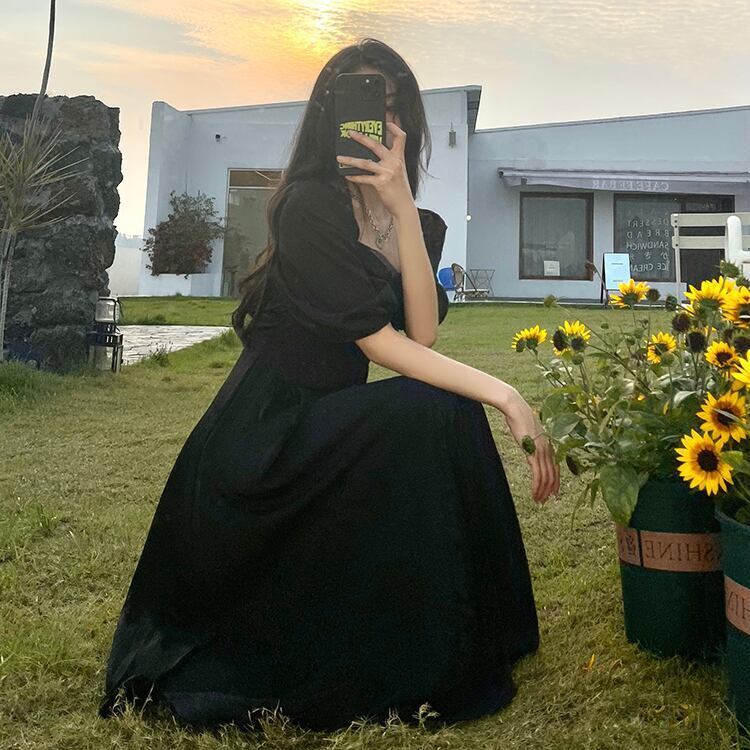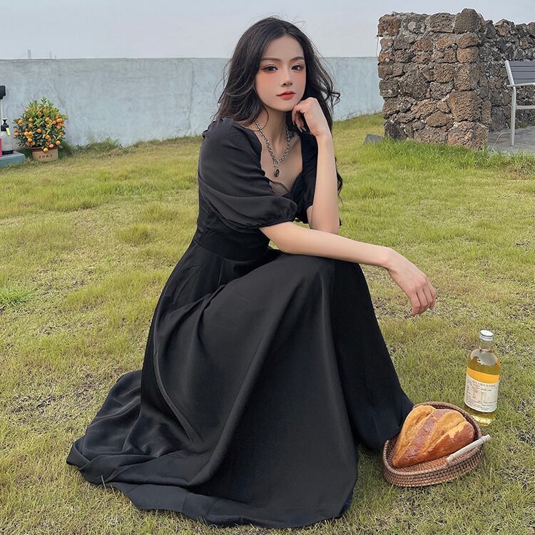 パフスリーブ 半袖 ボリューム袖 レース 大人っぽい ブラック 黒 スクエアネックワンピース サマー 新作 海外デザイン インポートファッション きれいめ きちんと シック ロングスカート スイングスカート ドレス フレアスカート ロングスカート ボリューム袖 かわいい 大人可愛い 大人 大人女子 きれいめ おしゃれ お洒落 シンプル ラブリー キュート ガーリー フェミニン 10代 20代 30代 通勤 学生 通学 デート お出かけ 女子会 普段使い ふんわり カジュアル こなれ感 抜け感 パーティー