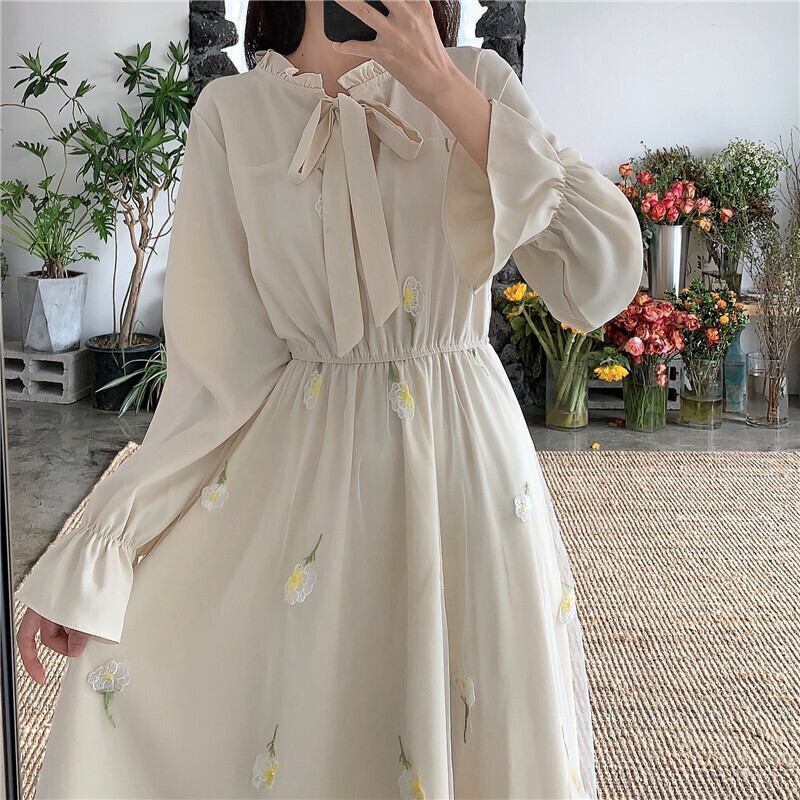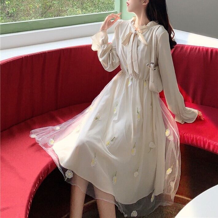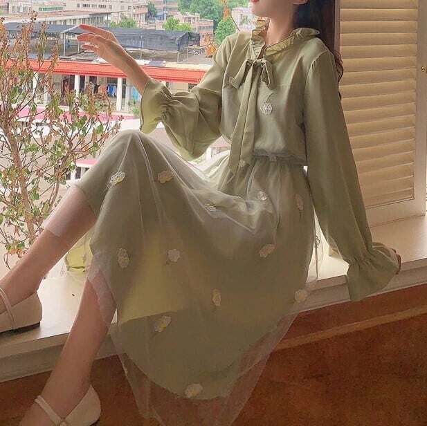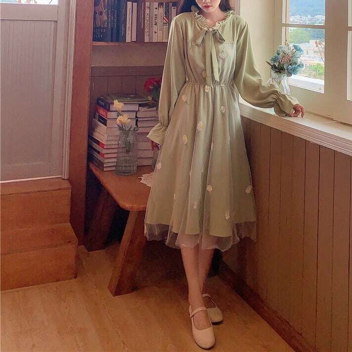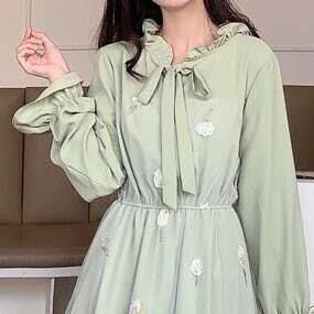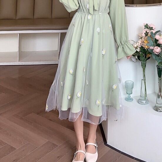 ワンピース ワンピ 秋冬ワンピース 女子 トレンド 秋冬トレンド トレンディ 流行 レディースファッション レトロデザイン 韓国デザイン オルチャン 海外ファッション プチプラ 半袖 長袖 花柄刺繍 フラワー刺繡 シースルー パフスリーブ リボンネクタイ グリーン アプリコット 大人綺麗10代 20代 30代 買い物 カジュアル オシャレクール 大人女子 妖精 新しい 学生 スカートドレス パーティー お呼ばれ 二次会 飲み会 合コン 女子会 モテ メンズライク 素敵 大人可愛い ミディアム丈 モダン