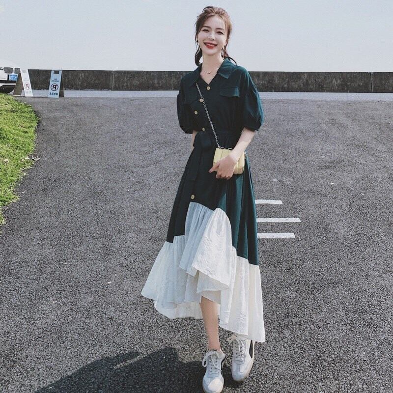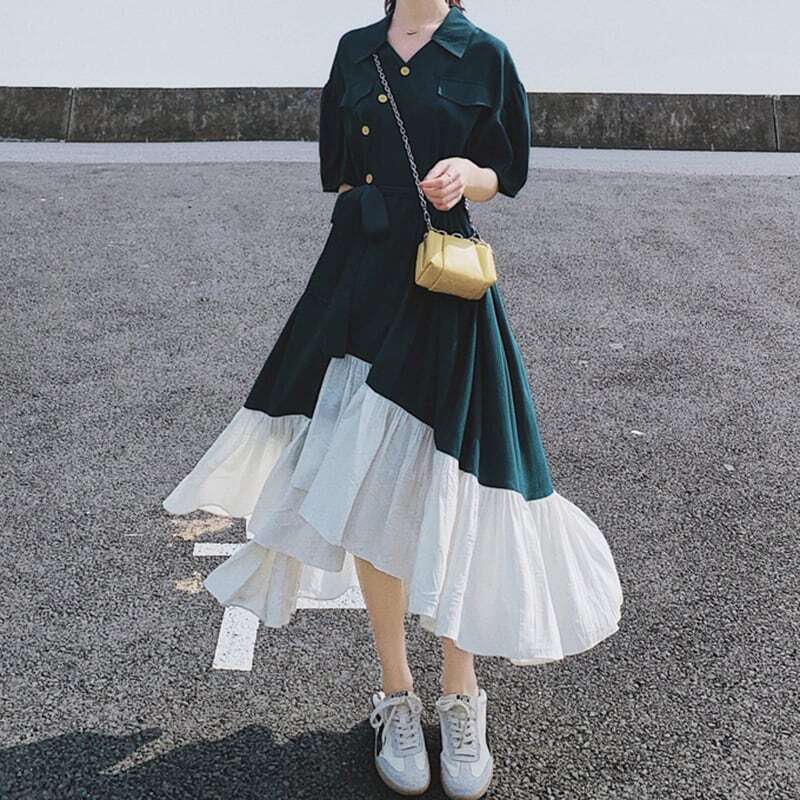 トレンドワンピース ワンピ ワンピース 女子 おしゃれ フリル パフスリーブ 半袖 ハーフスリーブ ボリューム裾 M L XL 2XL 3XL 4XL グリーン お出かけ 旅行 パーティー イベント 二次会 発表会 披露宴 デート リゾート メンズライク 韓国デザイン オルチャンファッション プチプラ ランキング キュート お勧め 大人かわいい 大人クール デザイン重視 ロング丈 ロング プラスサイズ 女性 新しい 不規則ドレス アシンメトリー インスタ映え 映える 海外ファッション モテ