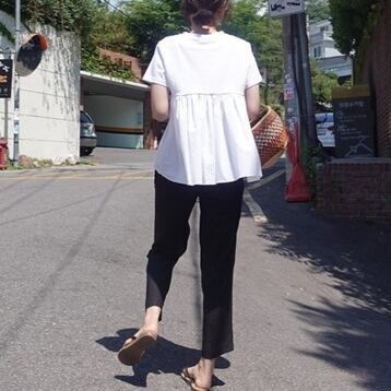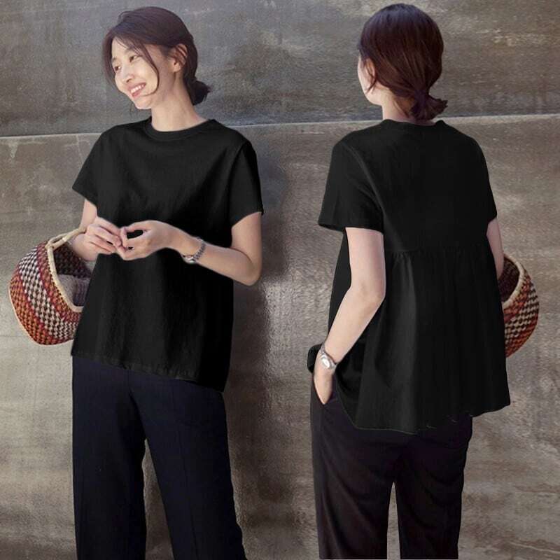 半袖サマーTシャツ Aラインシャツ 新作 バックフリル レディース ルーズ ラージサイズ ホワイト ブラック 外国スタイル カジュアル オールマッチ トップ ドールシャツ ラウンドネック 大人女子 大人 上品 おしゃれ デイリーウェア レトロ レトロ風 こなれ感 シルエット ラフ キュート かわいい 女子 個性的 デザイン 存在感 無地 20代 10代 30代 40代 レディース 女性用 学生 学校 通学 着回し 普段使い インポート 海外デザイン 外国風 シンプルデザイン お出かけ デイリーファッション