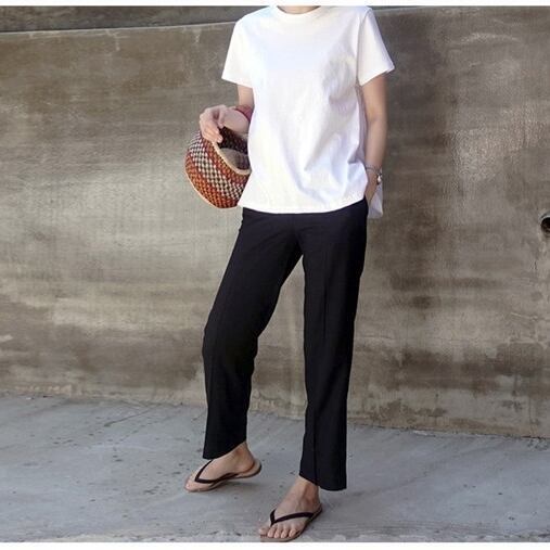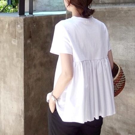 特に、後ろ姿のカワイイバックフリルがアクセントになるデザインは、着るだけでこなれ感と存在感が出ると人気です。また、しっかりした生地で透けにくく仕上げているので、デイリーウェアとしても活躍してくれます。定番デザインとの相性も抜群で、1枚は持っていると着回し力抜群です。今欲しい、毎日着たくなる大人女子におすすめの夏物Tシャツです。