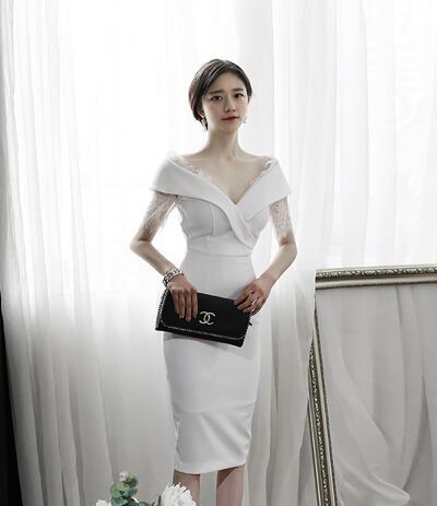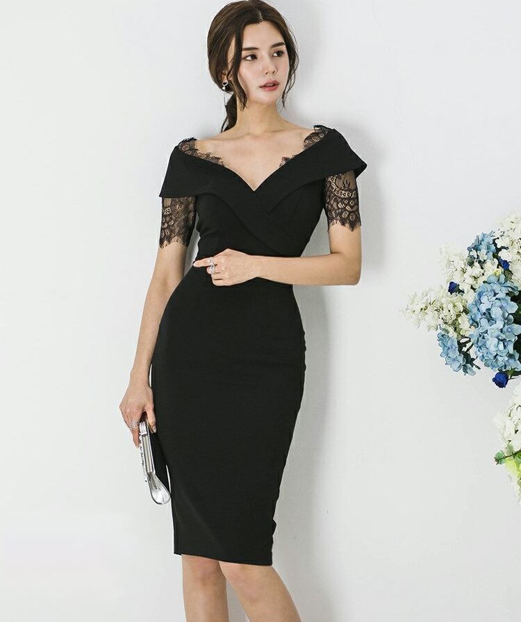 商品名にもあるように、このワンピースは多くのスタイルに合わせやすいデザインになっています。Vネックやオフショルダー、スリットやレースなど、女性らしいデザインがたっぷりと詰まった一枚です。特に、膝丈のタイトスカートがすっきりとした着こなしを演出してくれます。シンプルなアイテムはもちろん、ジャケットやボレロと合わせてフォーマルな場でも活躍してくれます。