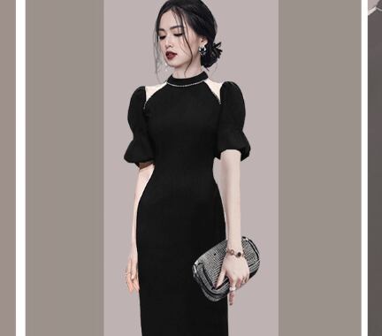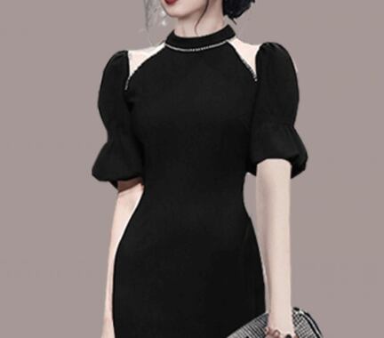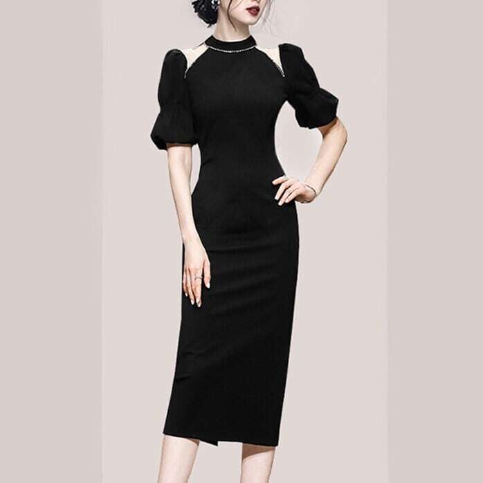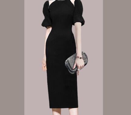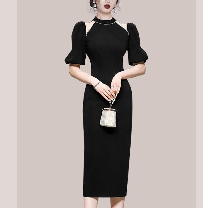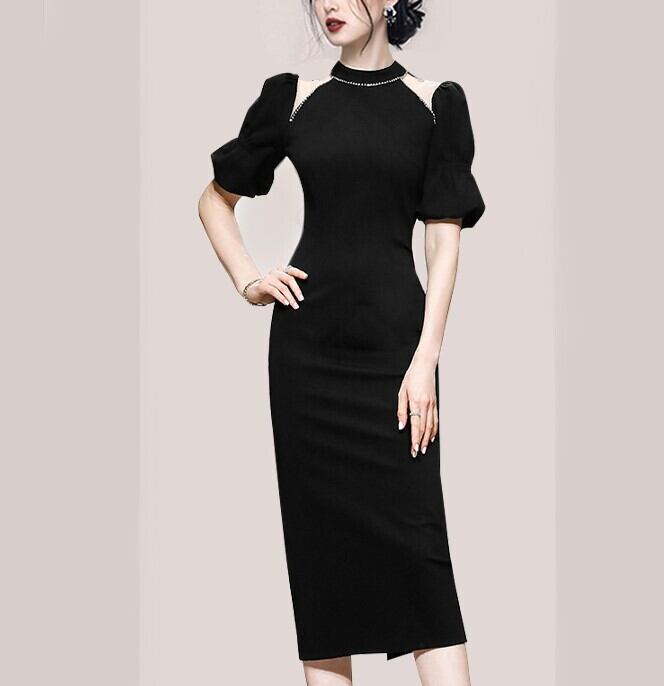 イブニングドレス パフスリーブ ワンピース タイトスカート タイト ドレス ブラック スタイル 韓国 デザイン オルチャン ホルダーネック S M L XL ファッション 海外 ネット イブニング ストラップレス ダイヤモンド ミドル丈 フレンチバブル 半袖ドレス ロイヤル シスタースタイル サマードレス きれいめ シンプル カジュアル 大人 上品 おしゃれ お洒落 大人可愛い キュート セクシー トレンド 人気 パーティーイベント 披露宴 二次会 旅行 リゾート ディナー お呼ばれ 結婚式 ウエディング