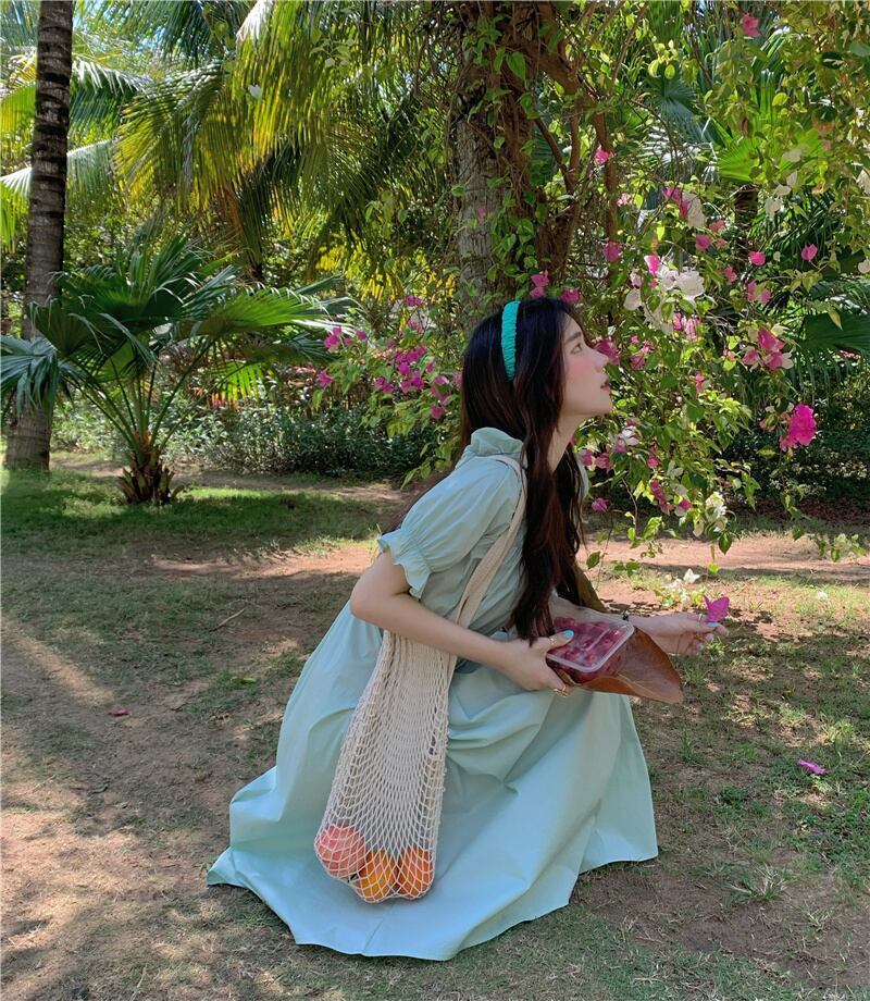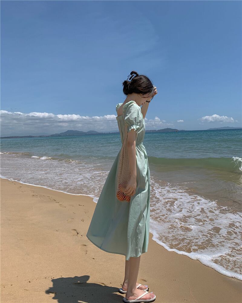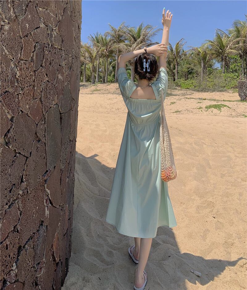 ワンピース レディース ロングスカート フレアワンピース ロング丈 ロング 袖あり 半袖 パフスリーブ スクエアネック 襟なし シャーリング ギャザー ウエストマーク ボタン 緑 グリーン ライトグリーン 無地 かわいい 大人可愛い 大人 大人女子 きれいめ おしゃれ お洒落 シンプル ラブリー キュート ガーリー 10代 20代 30代 通勤 学生 通学 デート お出かけ 女子会 休日 イベント 普段使い カジュアル こなれ感 ラフ ルーズ 抜け感 ゆる 夏 アウトドア リゾート 旅行 海 プール