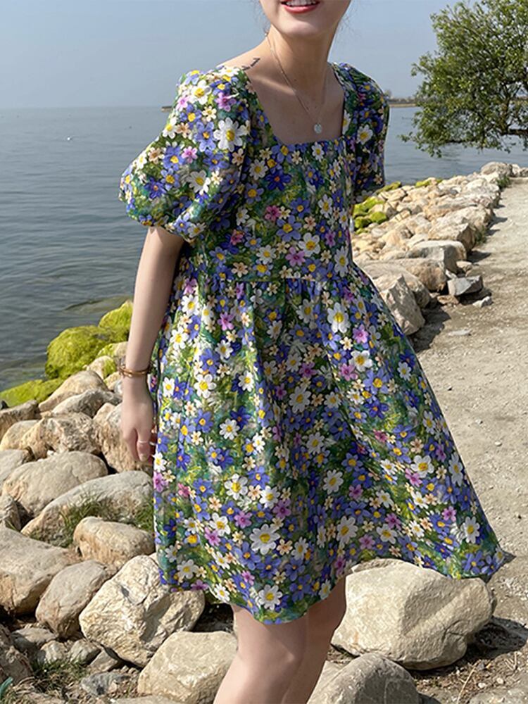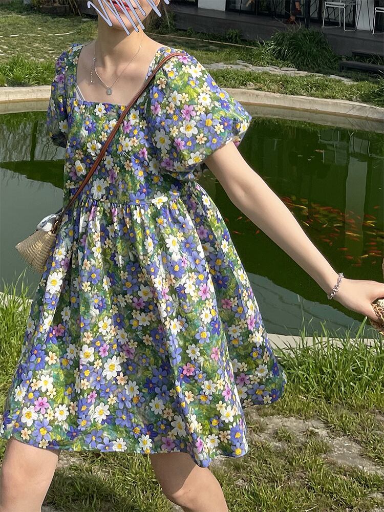ワンピース レディース ミニスカート ミニ丈 ミニ ショート丈 ショート 袖あり 半袖 パフスリーブ バルーンスリーブ スクエアネック 襟なし フレア ウエストマーク ギャザー もこもこ ふわふわ 花柄 小花柄 フラワー ボタニカル かわいい 大人可愛い 大人 大人女子 きれいめ おしゃれ お洒落 シンプル ラブリー キュート ガーリー 10代 20代 30代 通勤 学生 通学 デート お出かけ 女子会 休日 イベント 普段使い カジュアル こなれ感 抜け感 ゆったり 二次会 披露宴 パーティー