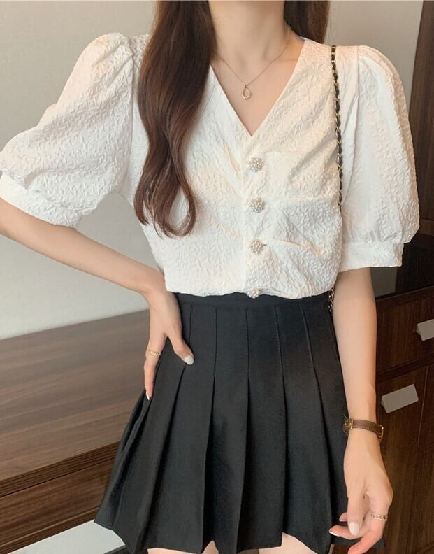 半袖フレンチバブルスリーブのブラウス。