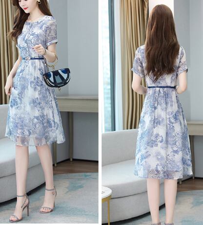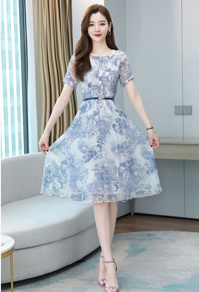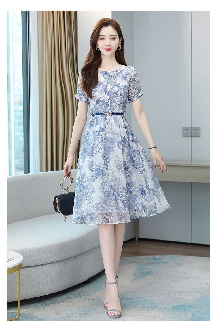 個性的 花柄ワンピ ひざ丈 ベルト付き レディース 半袖 フラワーモチーフ 爽やか 夏ワンピ フレアスカート ミディ丈 Aライン ブルー系 水色 涼し気 オフィス 通勤 通学 総柄 フローラル ボタニカル 大人女子 好感度 お食事 懇談会 ファスナー ボートネック ラウンドネック 韓国 韓国ファッション 大きめ柄 大人可愛い 二の腕カバー 体型カバー 低価格 値段重視 クラシカル ナチュラルワンピ トレンド かわいい 洗練デザイン ヘビロテ服 高コスパ 着回し サイズ豊富 2XL 10代 20代 30代