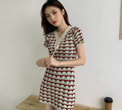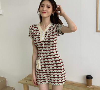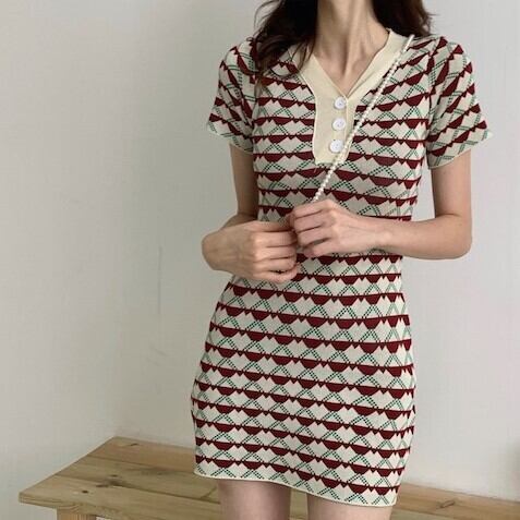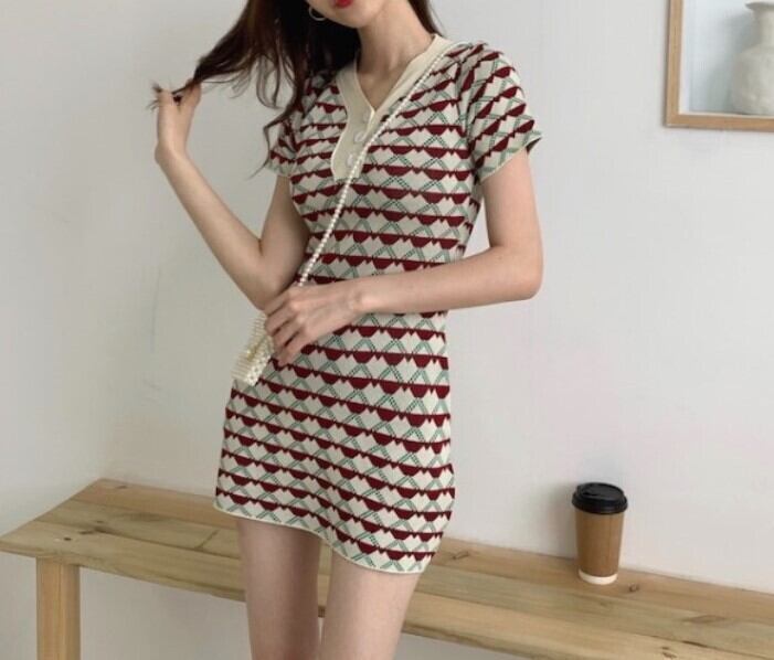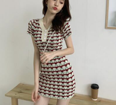 個性的 ニット ワンピース ワンピ ショート丈 Vネック 半袖 襟付き フロント ボタン 夏 新作 スリム スカート ハート柄 セクシー 薄手 Vネックスリム ニットワンピース 女性 トレンド クール 大人かわいい おしゃれ 海外 ファッション インポート ファッション海外 ネット ランキング インスタ メンズライク カジュア ルエレガント トレンド ネット プチプラ イベント お出かけ イベント パーティ 旅行 こなれ感 らふ ストリート 買い物 かっこいい インスタ映え ドレス 女子 二次会 BBQ
