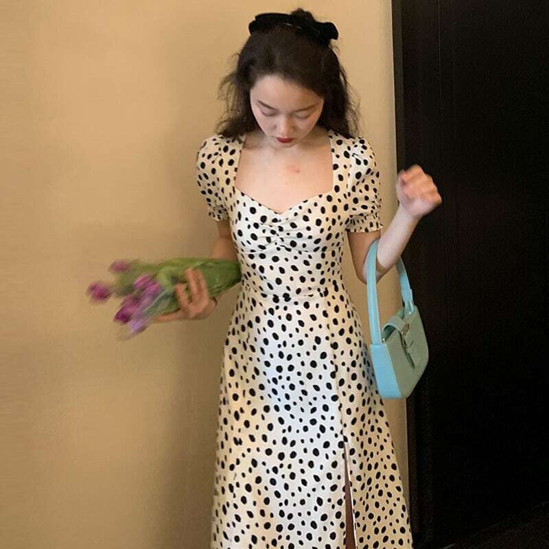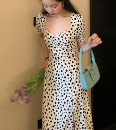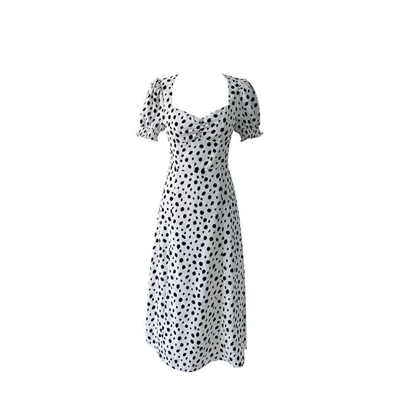 ワンピース レディース フレアスカート フレア 膝下 ミモレ ミモレ丈 半袖 パフスリーブ 襟なし白 ホワイト 黒 ブラック モノトーン デコルテ 柄 水玉 ドット 点々 アニマル柄風 ハイウエスト タイト ギャザー サイドスリット スリット 大人可愛い シンプル カジュアル セクシー おしゃれ お洒落 レトロ 大人女子 大人可愛い こなれ感 ラブリー キュート ガーリー 大きめ 大きいサイズ 夏 通勤 学生 通学 デート お出かけ 女子会 休日 パーティー イベント リゾート 10代 20代 普段使い