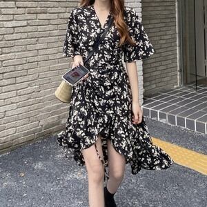 ワンピース レディース フレアスカート チュールスカート ひざ丈 袖あり 半袖 5分袖 Vネック フレア Aライン かわいい 大人可愛い きれいめ シンプル カジュアル 大人 おしゃれ お洒落 大人可愛い 大人女子 ラフ 個性的 ワンサイズ モノトーン 柄 夏 2021 20代 30代 通勤 学生 通学 デート お出かけ 公園デビュー 女子会 休日 リゾート 旅行 海 着回し 普段使い 韓国 韓国系 オルチャン ファッション コーデ スタイル 楽ちん モテ ギフト 新作 定番 トレンド インスタ映え