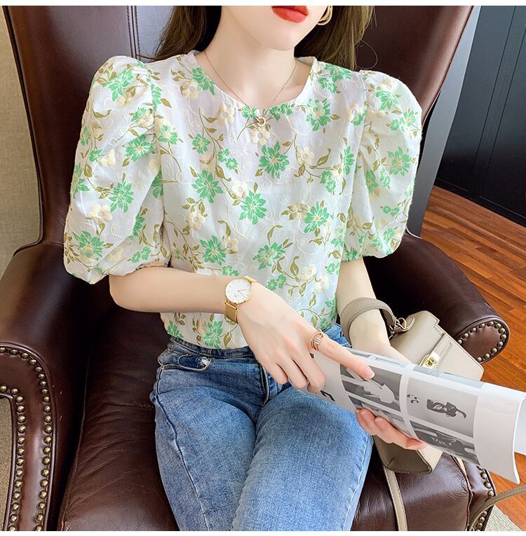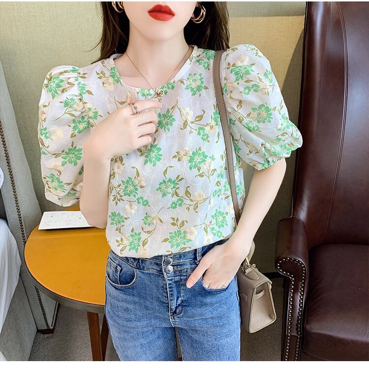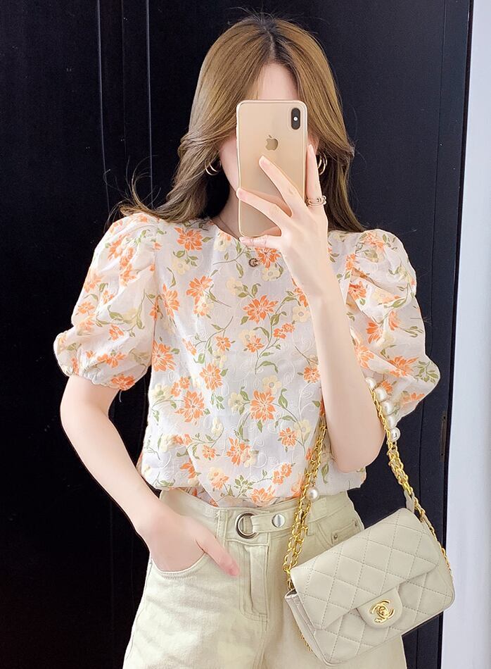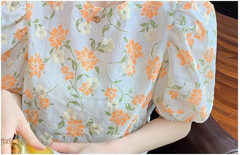 おしゃれでかわいいブラウスが登場しました!フラワーデザインに刺繍が施された、夏にぴったりな「ブラウス レディース シャツ トップス」です。トップス部分には柔らかいシャーリングが施され、女性らしさを演出。また、パフスリーブがふんわりとした印象を与えてくれます。襟や裾にはギャザーが入り、ボディーラインもカバーしてくれます。バックスタイルも可愛いポイント!バックボタンのデザインは、後ろ姿もキレイに見せてくれます。カラーバリエーションも豊富で、オレンジ、緑、グリーンの3色展開です。どんなボトムスとも相性が良く、デートや女子会、普段使いにとてもオススメです!夏らしいファッションを完成させましょう。