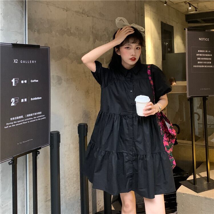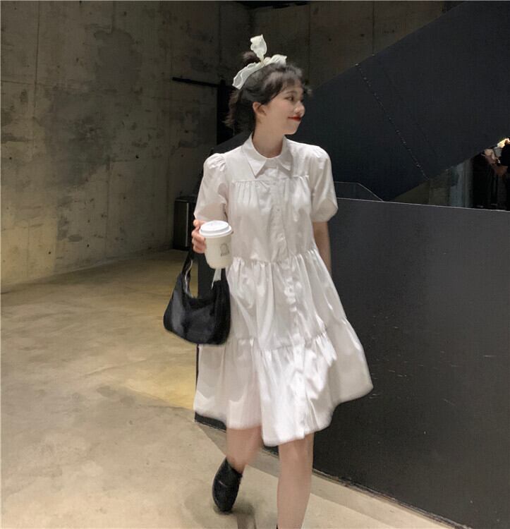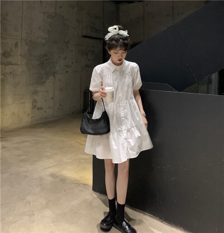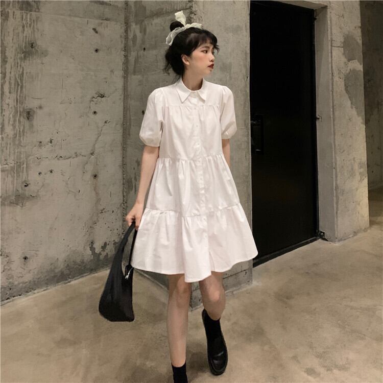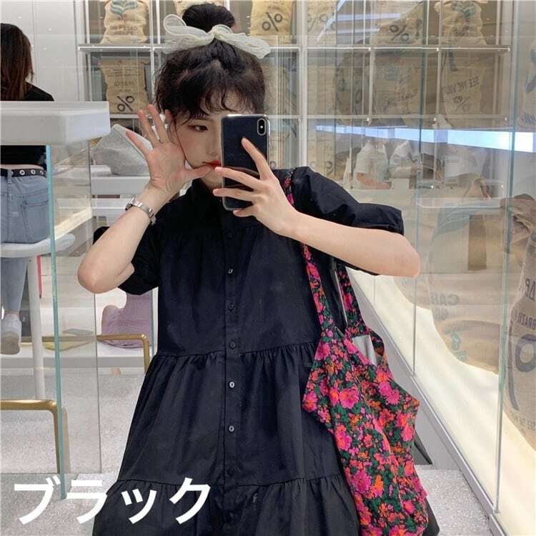 ワンピース レディース フレアスカート ショート丈 膝上 袖あり 半袖 ボリューム袖 クルーネック フレア Aライン 裾フレア シフォン フリル 前開き かわいい 大人可愛い シンプル おしゃれ お洒落 こなれ感 キュート ガーリー 個性的 S M L XL 白 ホワイト 黒 ブラック 無地 春 夏 2021 20代 30代 学生 通学 デート お出かけ 女子会 旅行 韓国 オルチャン ファッション コーデ スタイル モテ 体系カバー プレゼント 新作 定番 プチプラ 安い トレンド 流行 インスタ映え