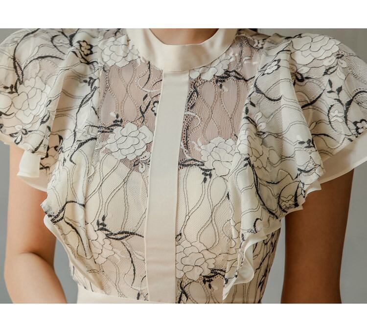 ワンピース レディース レース 透け感 タイトスカート ひざ丈 膝上 エレガント 20代 白 ホワイト ベージュホワイト 半袖 蓮の葉袖 ティアードスリーブ ハンカチーフスリーブ スタンドカラー ワンステップスカート 韓国系 フェミニン スリム タイト 細身 レース フリル ウエストマーク 透け感 シースルー かわいい 大人可愛い きれいめ 大人 上品 おしゃれ お洒落 大人女子 ガーリー セクシー エレガント ボタニカル 主役級 存在感 柄 結婚式 二次会 披露宴 デート お出かけ パーティー イベント