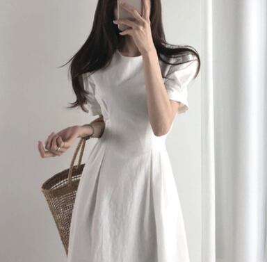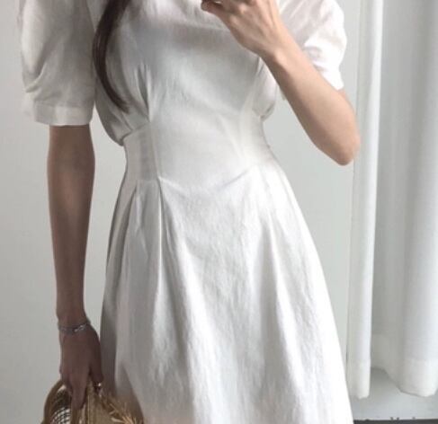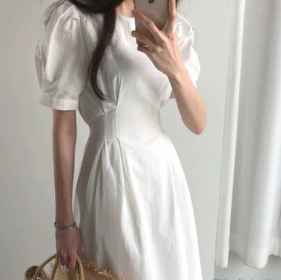 バックリボン+パフスリーブ +ウエスト切り返しギャザーでキュートな大人可愛いワンピ♪♫