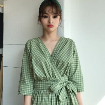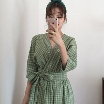 レディース ファッション 個性的 ワンピ チェック柄 Vネック カシュクール 半袖 ミモレ丈 ワンピース 膝下 ミモレ 袖あり 襟なし Aライン 切り替えデザイン リボン ウエストマーク ウエストリボン ハイウエスト 前開き 2way かわいい 大人可愛い シンプル カジュアル 大人 おしゃれ お洒落 大人女子 ルーズ 主役級 柄 格子柄 春 夏 秋 10代 20代 通勤 学生 通学 デート お出かけ 女子会 休日 旅行 着回し 普段使い 重ね着 韓国 楽ちん サイズ S M L XL 緑 グリーン