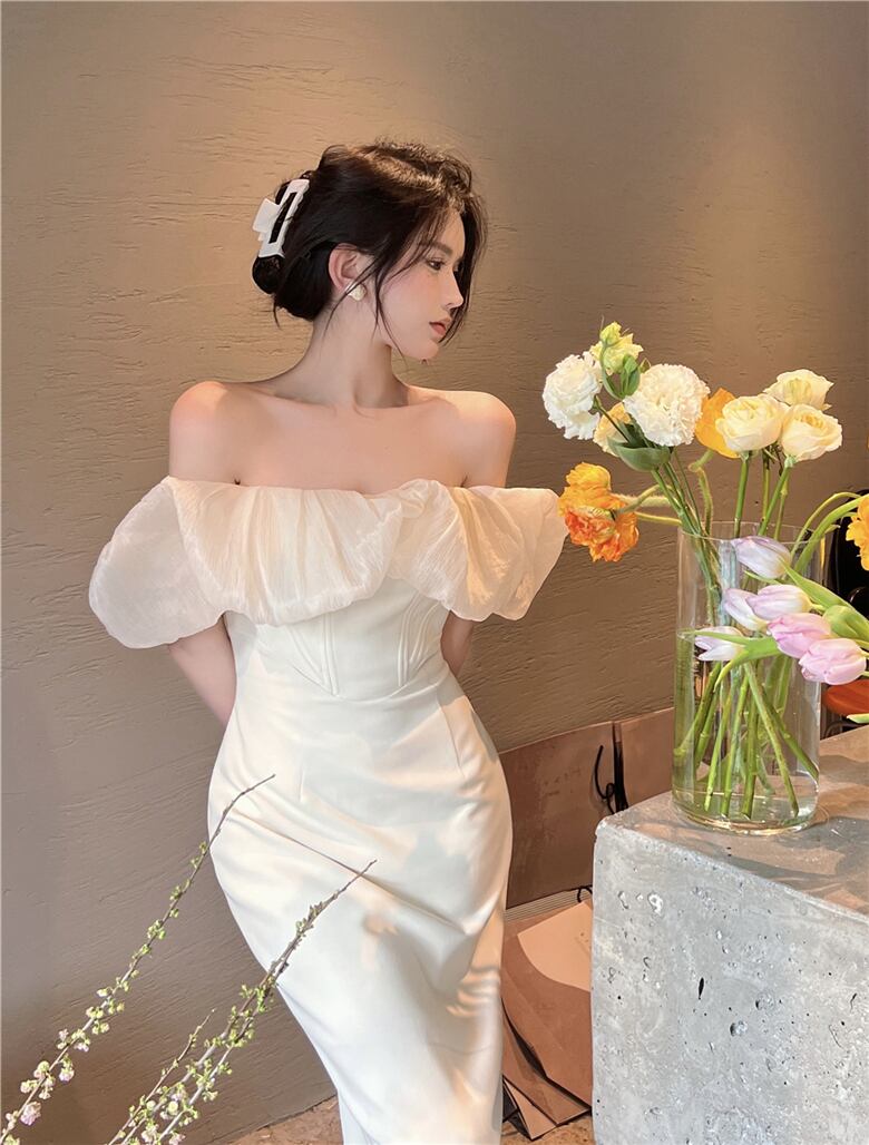レディース ファッション 個性的 新作 チュール オフショル ミモレ丈 コクーン ドレス ワンピース 衣装 パーティードレス ワンピドレス 膝下 ミモレ 袖あり 半袖 オフショルダー Aライン スリム ハイウエスト かわいい 大人可愛い きれいめ シンプル 大人 上品 おしゃれ お洒落 大人女子 主役級 無地 10代 20代 学生 デート お出かけ 女子会 休日 イベント 韓国系 オルチャン 高見え 格上げ 春 夏 結婚式 二次会 2次会 お呼ばれ パーティ サイズ S M L 白 ホワイト 黒 ブラック