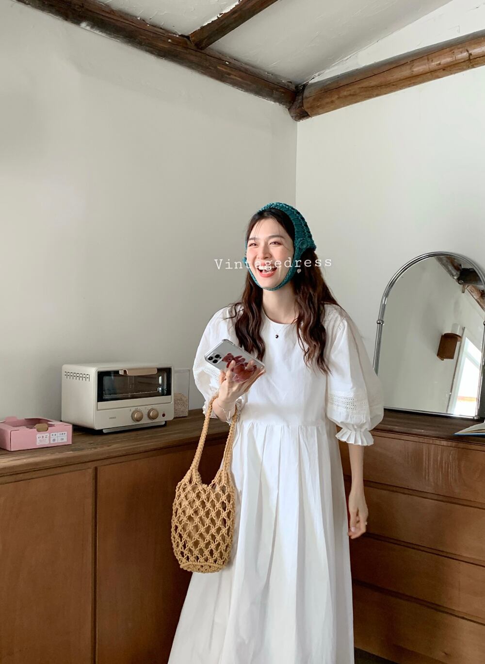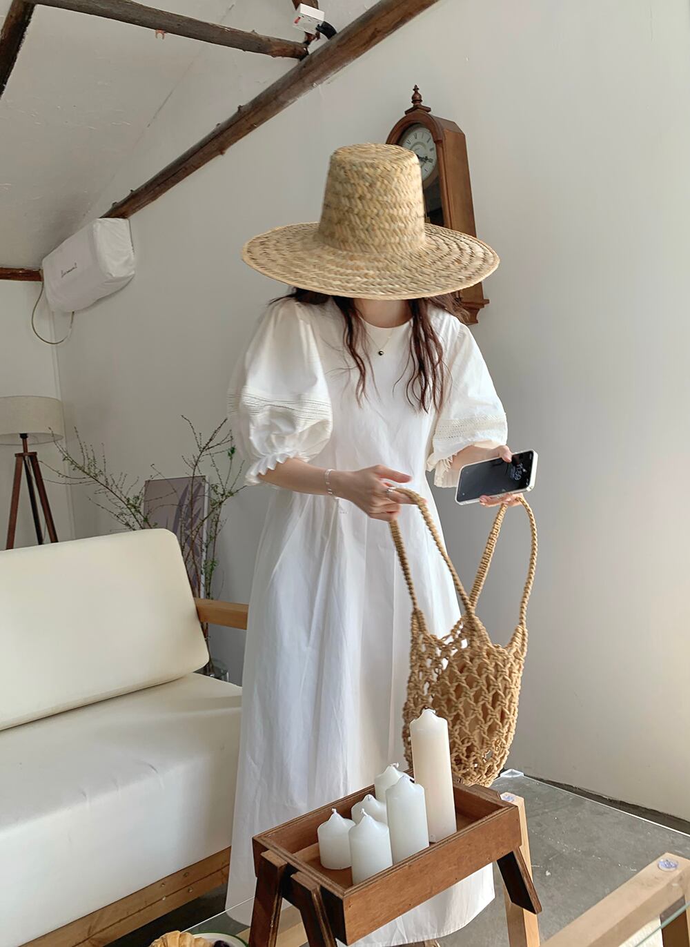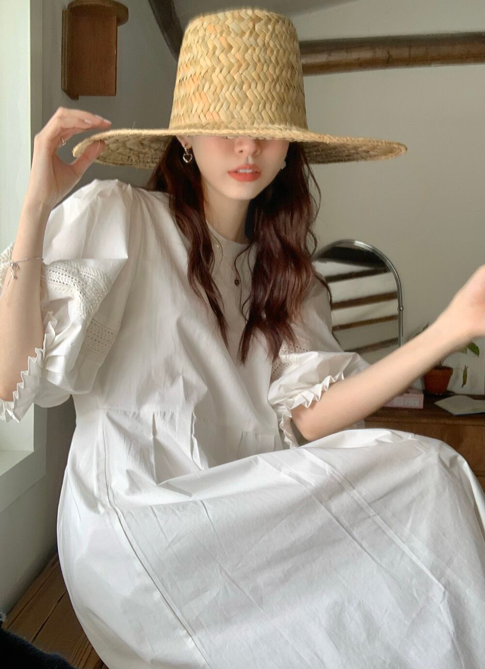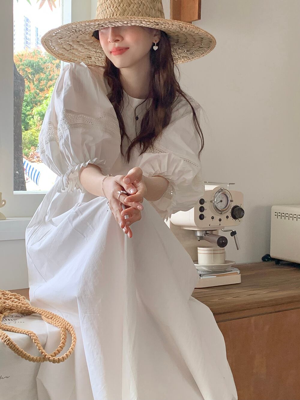 レディース ファッション 個性的 新作 レース パフスリーブ ロング ワンピース 膝下 ロング丈 マキシ マキシ丈 袖あり 半袖 ボリューム袖 ラウンドネック Aライン 刺繍 フリル 伸縮性 かわいい 大人可愛い シンプル カジュアル 大人 おしゃれ お洒落 レトロ 大人女子 主役級 無地 柄 春 夏 10代 20代 通勤 学生 通学 デート お出かけ 女子会 休日 旅行 着回し 普段使い 重ね着 韓国 韓国系 オルチャン 楽ちん 体系カバー ゆったり サイズ S M L XL 色展開 白 ホワイト