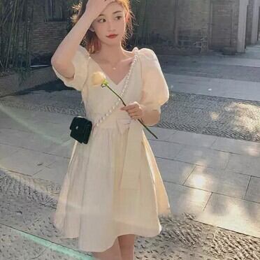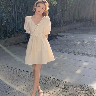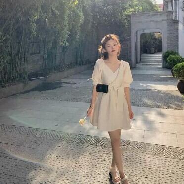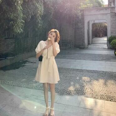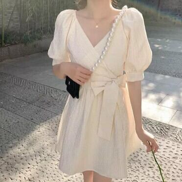 レディース ファッション 個性的 Vネック ウエストリボン ワンピース フレアワンピース ミニ ミニ丈 膝上 袖あり 半袖 パフスリーブ 襟なし フレア スリム 細身 Aライン 切り替えデザイン リボン ウエストマーク ハイウエスト かわいい 大人可愛い カジュアル 大人 おしゃれ お洒落 大人女子 ラブリー キュート ガーリー 主役級 無地 夏 10代 20代 通勤 学生 通学 デート お出かけ 女子会 休日 着回し 普段使い 重ね着 韓国 韓国系 オルチャン サイズ 黒 ブラック オフホワイト