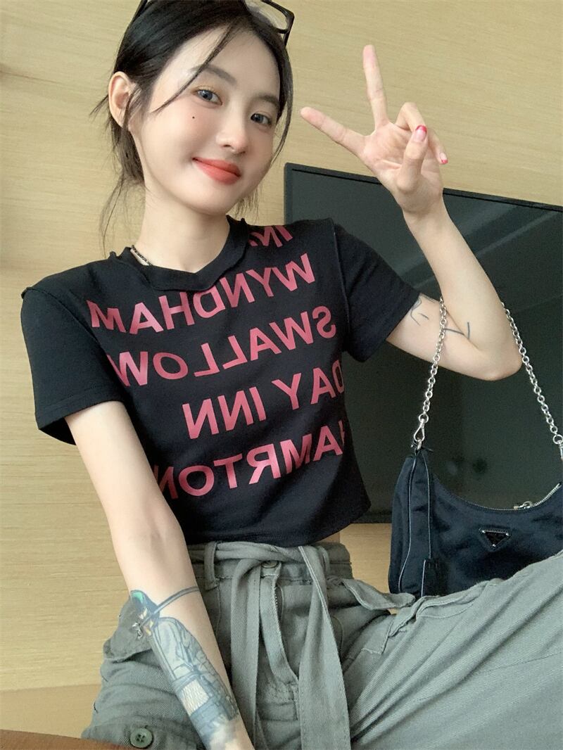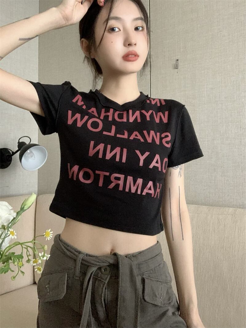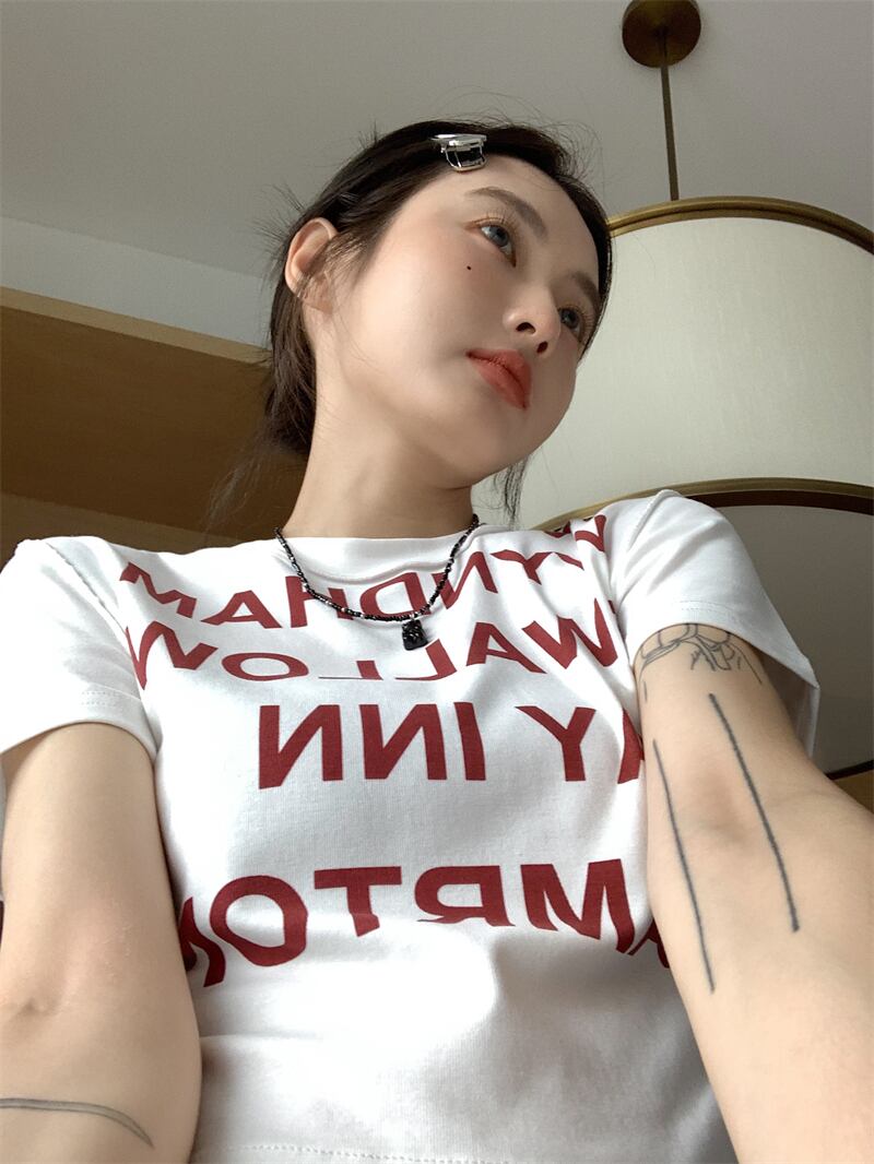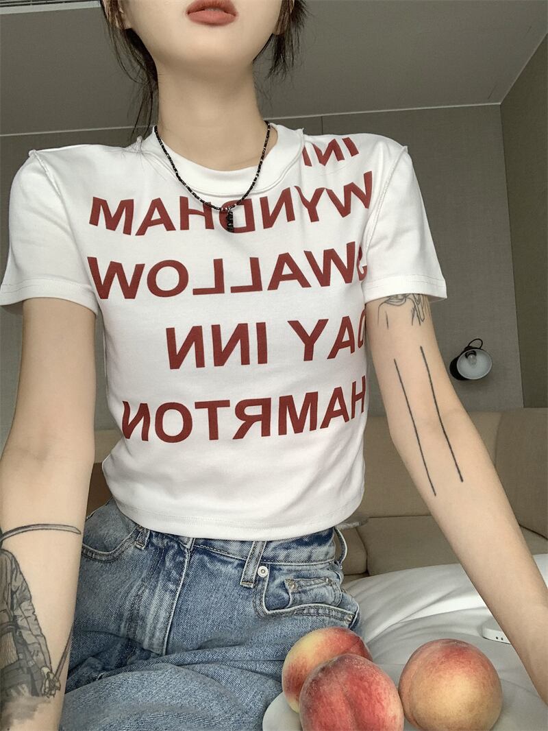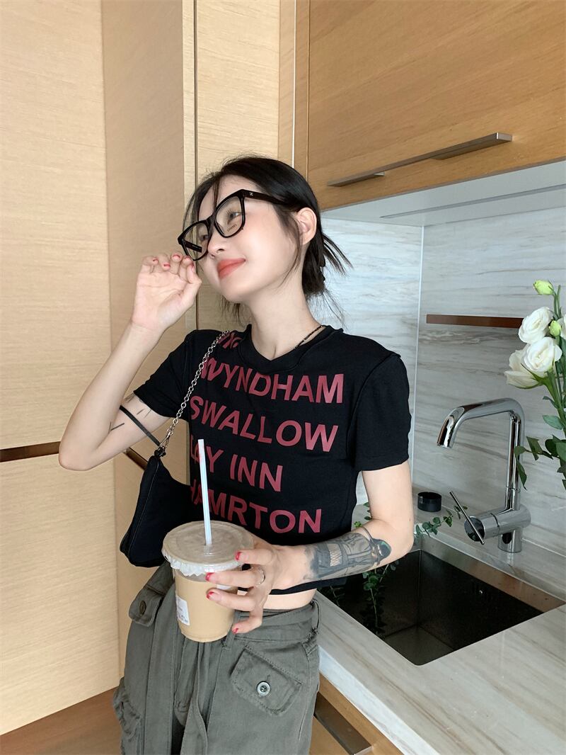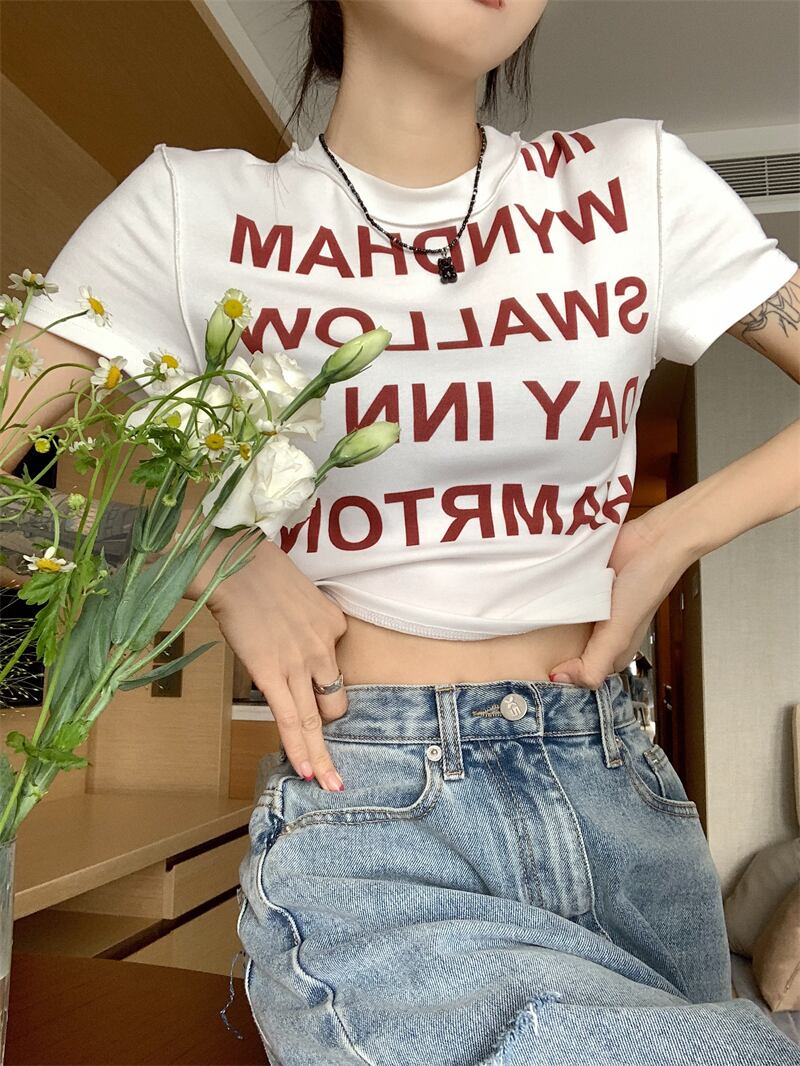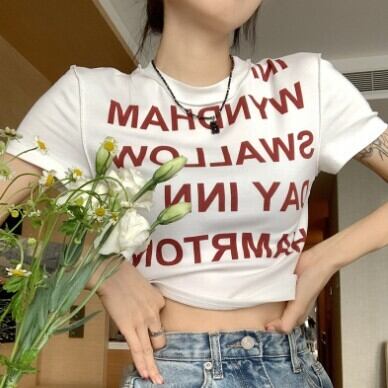 レディース ファッション 個性的 英字 ショート丈 半袖 Tシャツ トップス ショート 袖あり ラウンドネック 襟なし スリム 細身 伸縮性 かわいい 大人可愛い カジュアル 大人 おしゃれ お洒落 大人女子 存在感 柄 ロゴ プリント 夏 10代 20代 通勤 学生 通学 デート お出かけ 女子会 休日 旅行 着回し 普段使い 重ね着 韓国 韓国系 オルチャン フリーサイズ 色展開 白 ホワイト 黒 ブラック 低価格 コスパ 値段重視 低予算 インポート 簡単 ギフト 海外 イメチェン 好感度